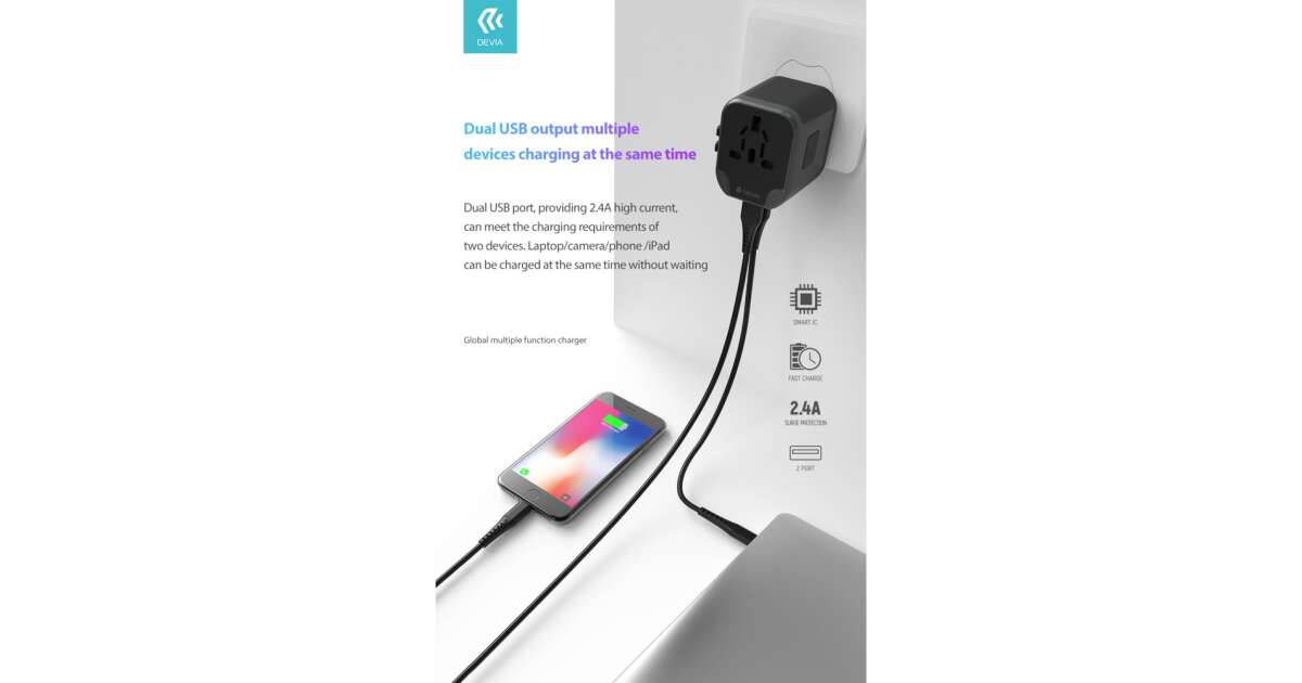 Devia Univerzálny Cestovný Nabíjačka: Nabíjajte svoje zariadenia kdekoľvek na svete 🌍