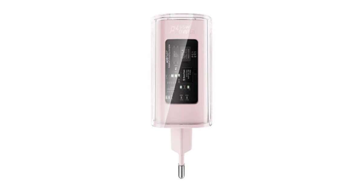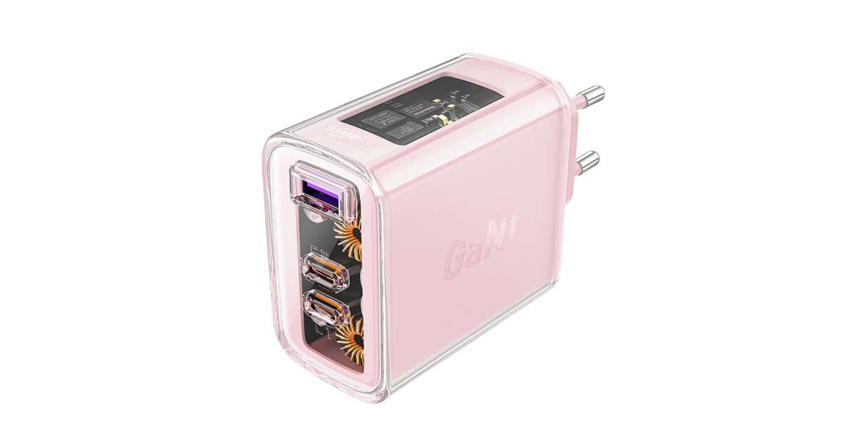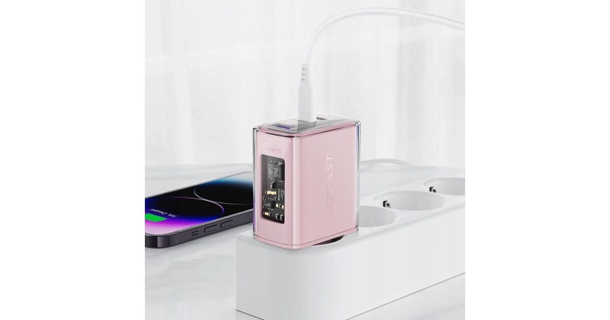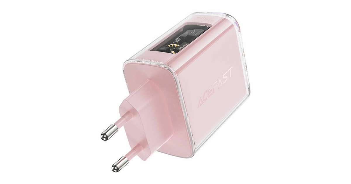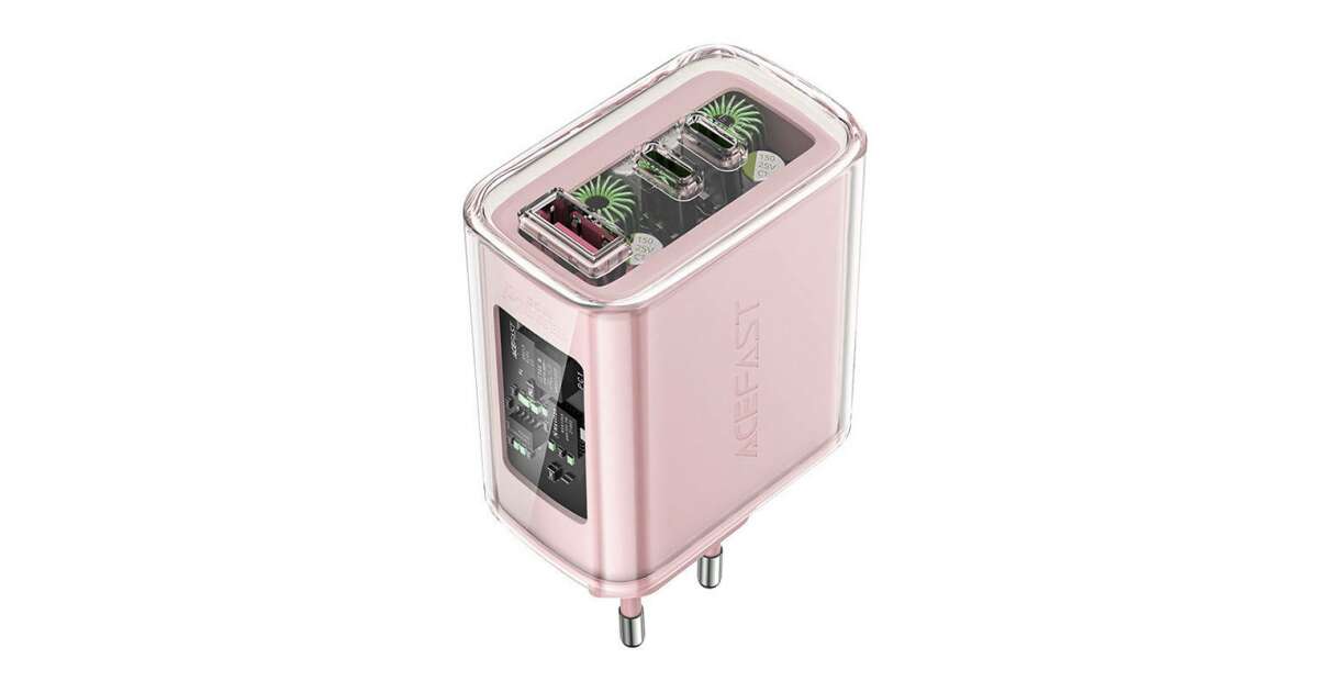 Adaptér Acefast A45, 2x USB-C, 1xUSB-A, 65W, PD, ružový popis