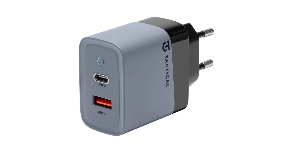 Taktická Microgrid nabíjačka GaN 45W, USB-A + Type-C, šedá