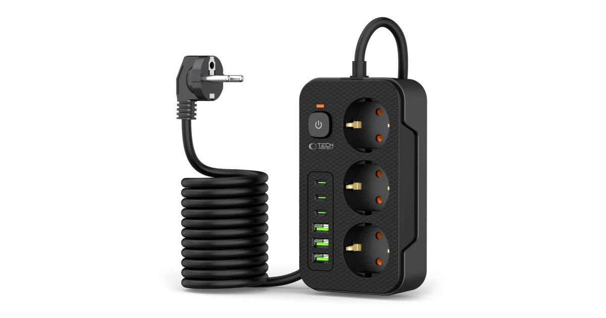 Tech-Protect Power Socket distribútor 3*USB-C+3*USB-A 2M čierny