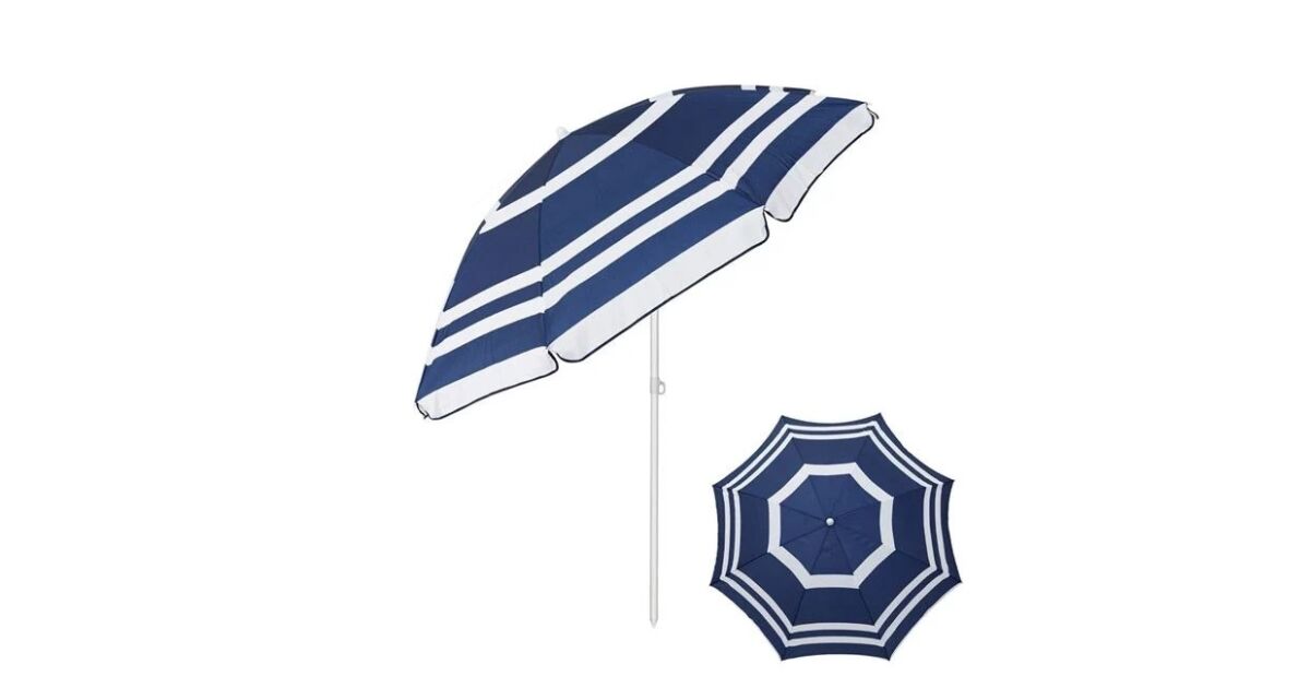 Tento vetruodolný plážový slnečník s klasickým námorníckym dizajnom a bielymi pruhmi je ideálnou voľbou na pláž, piknik alebo do záhrady. Vďaka vysokej ochrane pred slnkom a nastaviteľnému uhlu sklonu vždy poskytuje najpohodlnejší tieň.