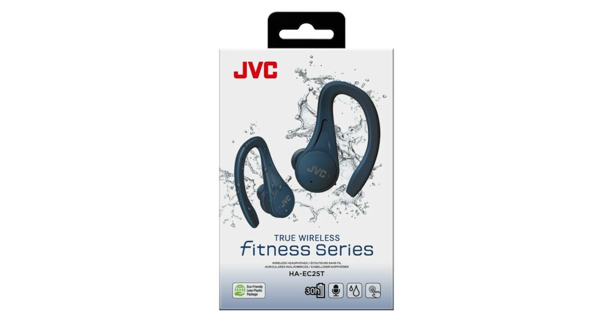 Náhlavná súprava Bluetooth JVC HA-EC25T-A-U s technológiou Pivot Slide Motion Fit, modrá farba