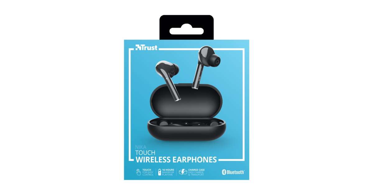 Trust Nika Touch Slúchadlá s mikrofónom True Wireless Stereo (TWS) Do ucha Hovor / hudba Bluetooth Čierna (Trust 23554)