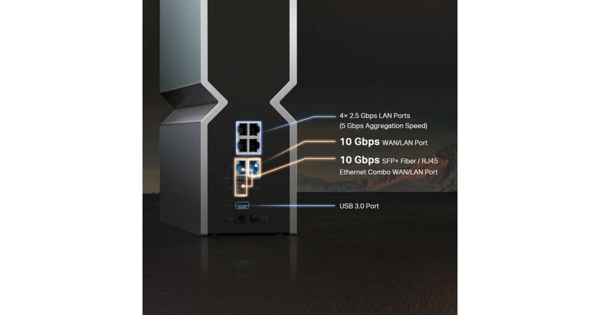 - Multi-Gigabitové ethernetové porty: Porty 10 Gbps WAN/LAN, 10 Gbps SFP+/RJ45 Combo WAN/LAN a 4× 2.5 Gbps LAN zabezpečia maximálnu rýchlosť aj pre káblové zariadenia. 💻