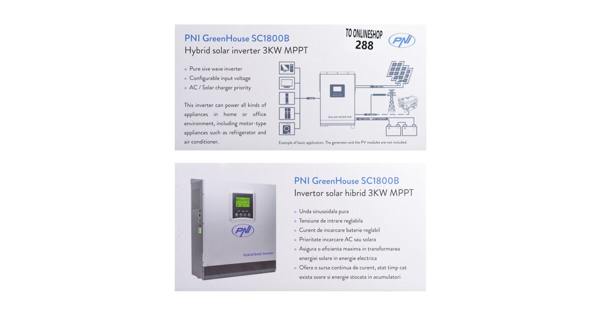 Solárny invertor PNI GreenHouse SC1800B 3KW 13A 3000VA, 24V, MPPT 60A, Off Grid Hybrid Sinus Pure popis