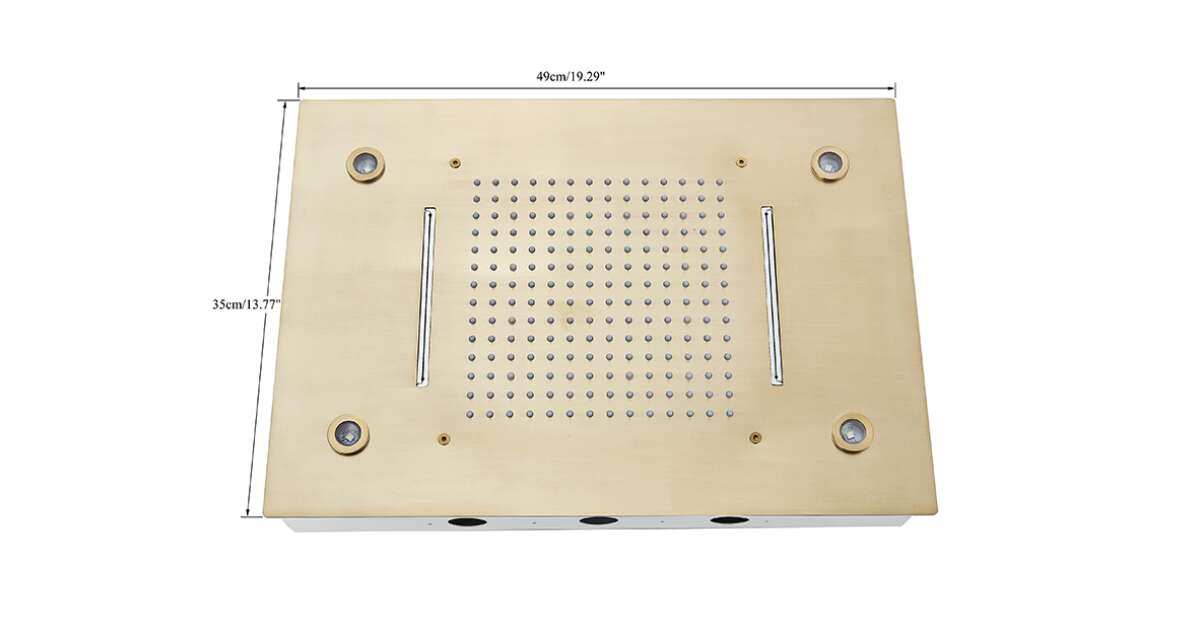 Sada sprchových batérií, Blackswan, Typ M191, matný zlatý model, s 2 smermi a sprchovou hlavicou s 2 režimami, termostatom, diaľkovým ovládaním a LED osvetlením, veľkosť 50 cm