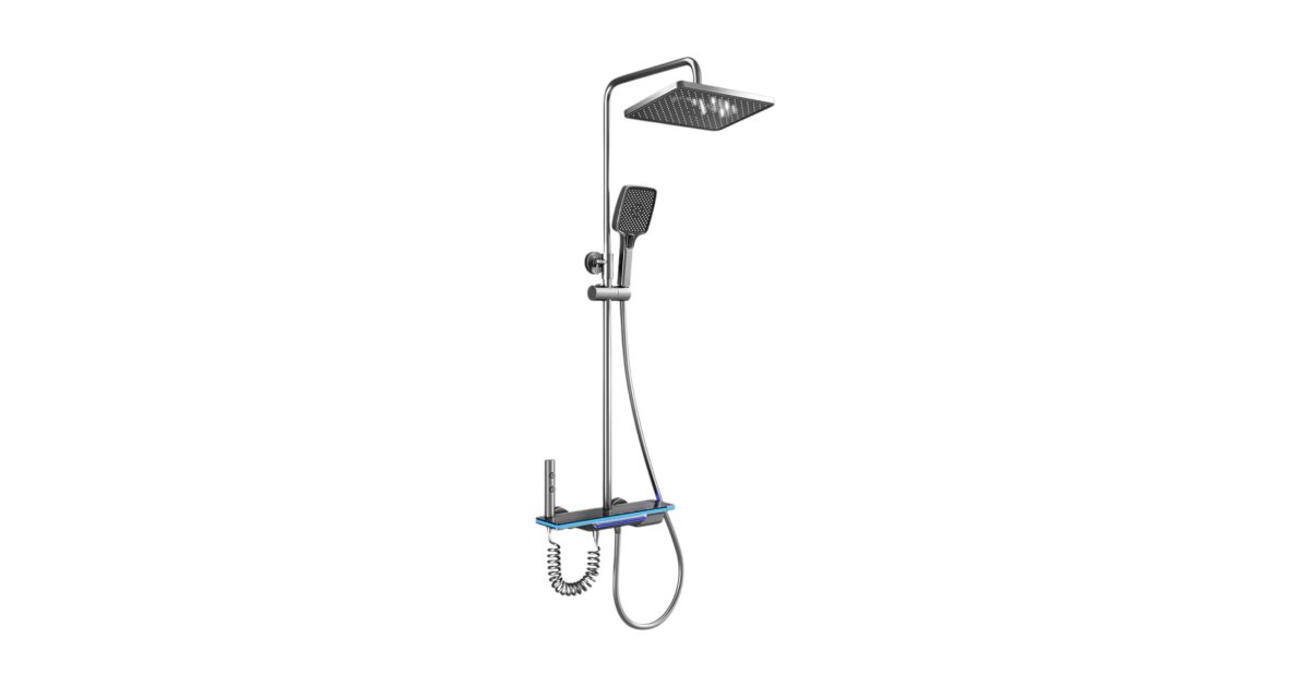 Set de dus cu Iluminare LED si afisaj Digital al Temperaturi, coloana cu termostat si turbina generatoare de curent integrata, 4 functii de curgere a apei, dus reglabil, fix tip ploaie, robin