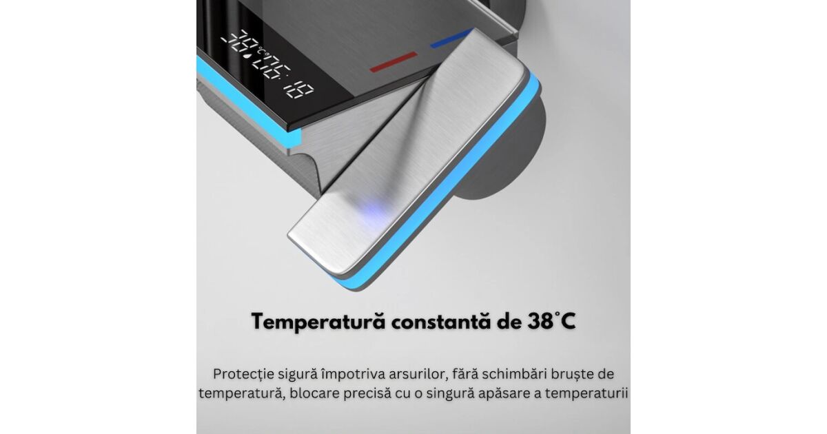 - Digitálny displej zobrazuje teplotu vody v reálnom čase.