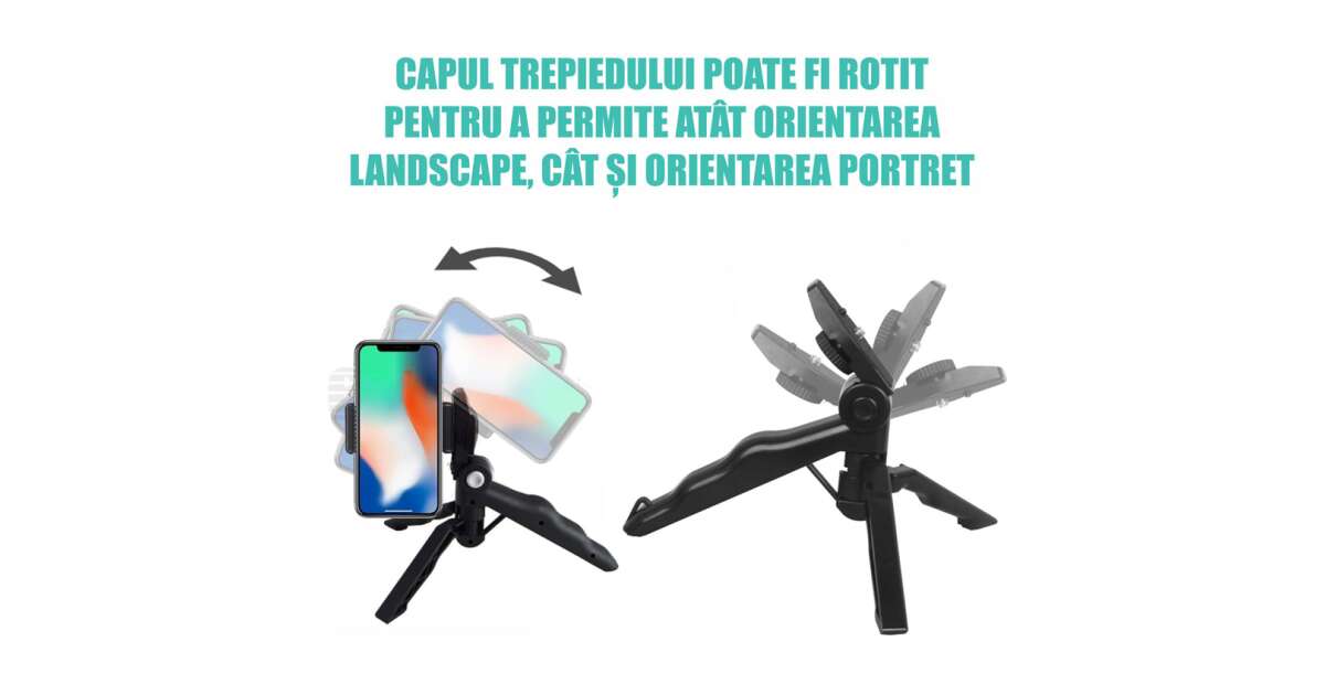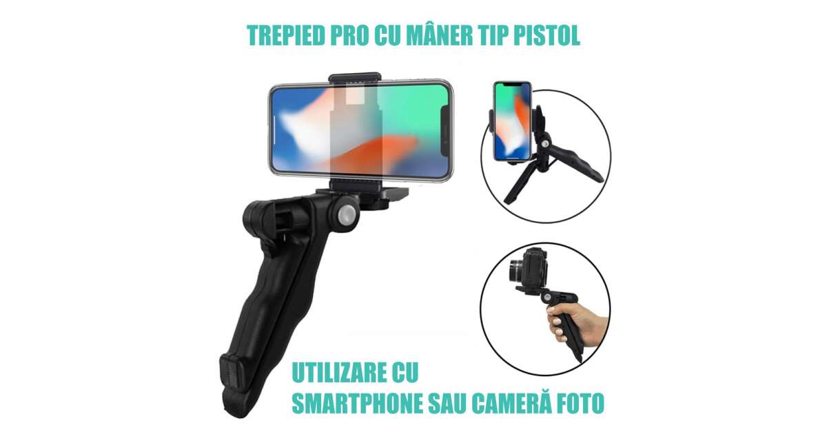 - Skladací statív s pištoľovou rukoväťou: Stabilné držanie v ruke aj na stole. 📱
