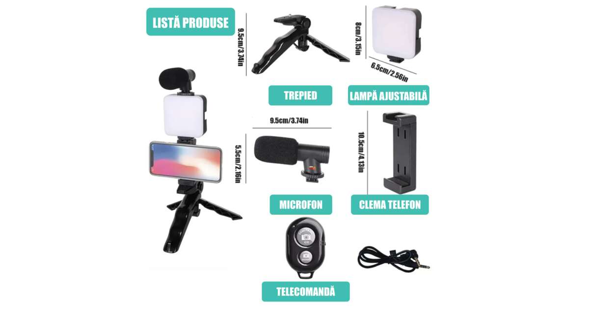 Tento kompletný vlogging set obsahuje všetko, čo potrebujete na vytváranie videí a živých prenosov v profesionálnej kvalite pomocou smartfónu alebo fotoaparátu. Poskytuje vysokokvalitný zvuk, osvetlenie a stabilné zábery, aby váš obsah vynikol.