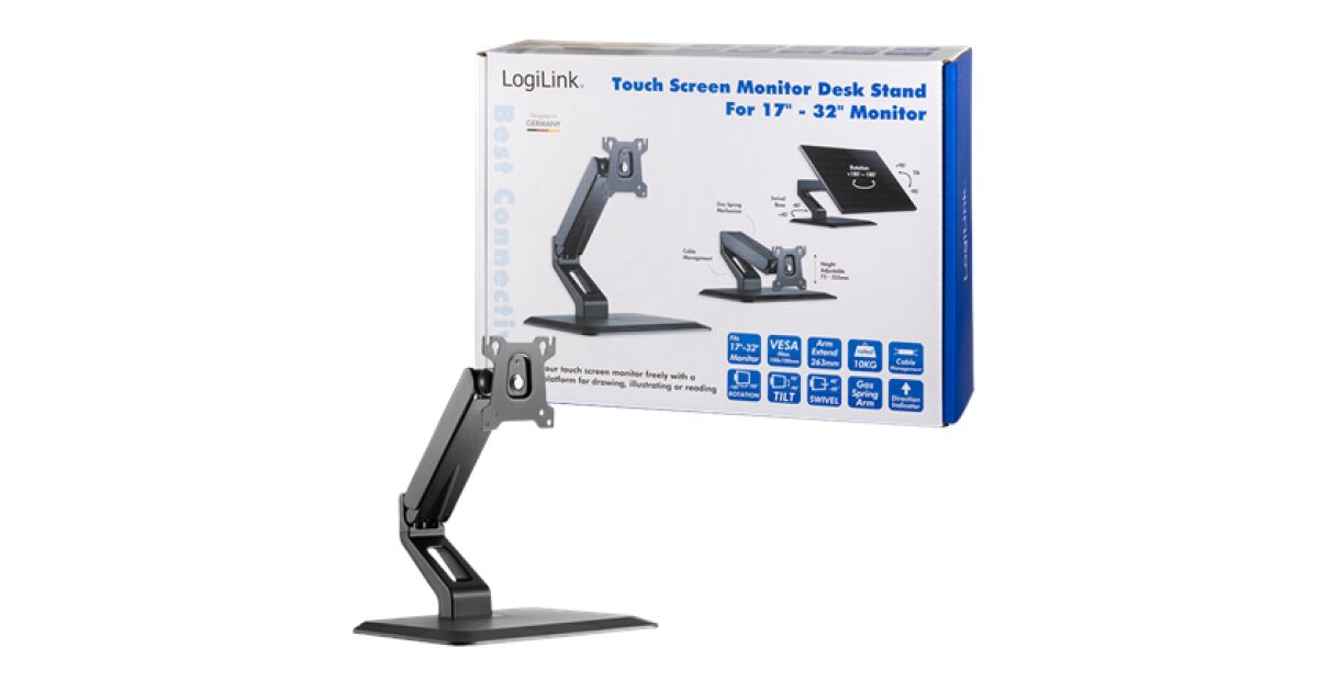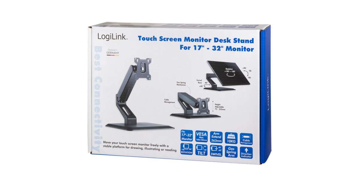 Tento stolový držiak na monitor od LogiLink je perfektnou voľbou pre LCD TV a monitory s uhlopriečkou 17-32". Vďaka systému plynovej pružiny je možné jednoducho nastaviť výšku, uhol sklonu a otáčanie, čím sa zabezpečí ergonomické pracovné prostredie. Systém správy káblov pomáha udržiavať káble usporiadané.