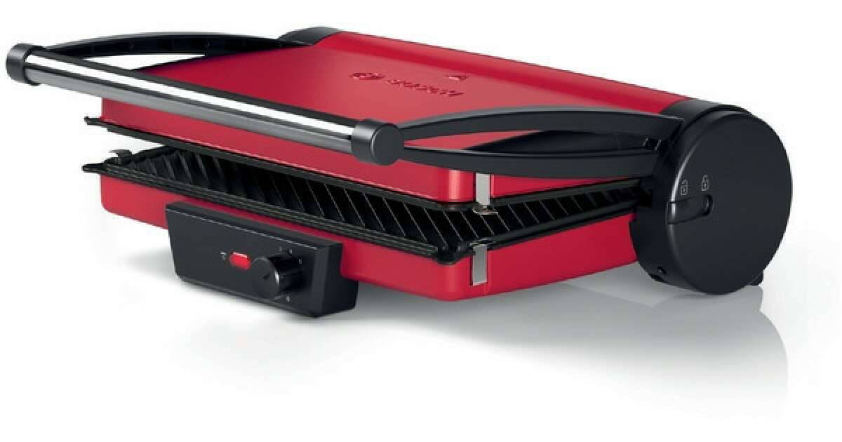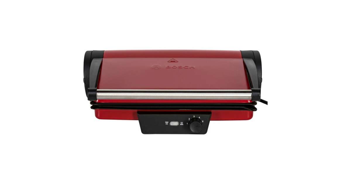 Elektrický gril BOSCH TCG4104, 2000W, 3V1, nastaviteľný termostat, nepriľnavé a vyberateľné platne, červená