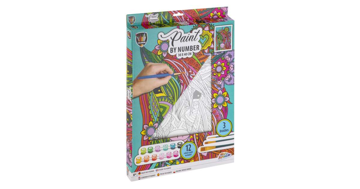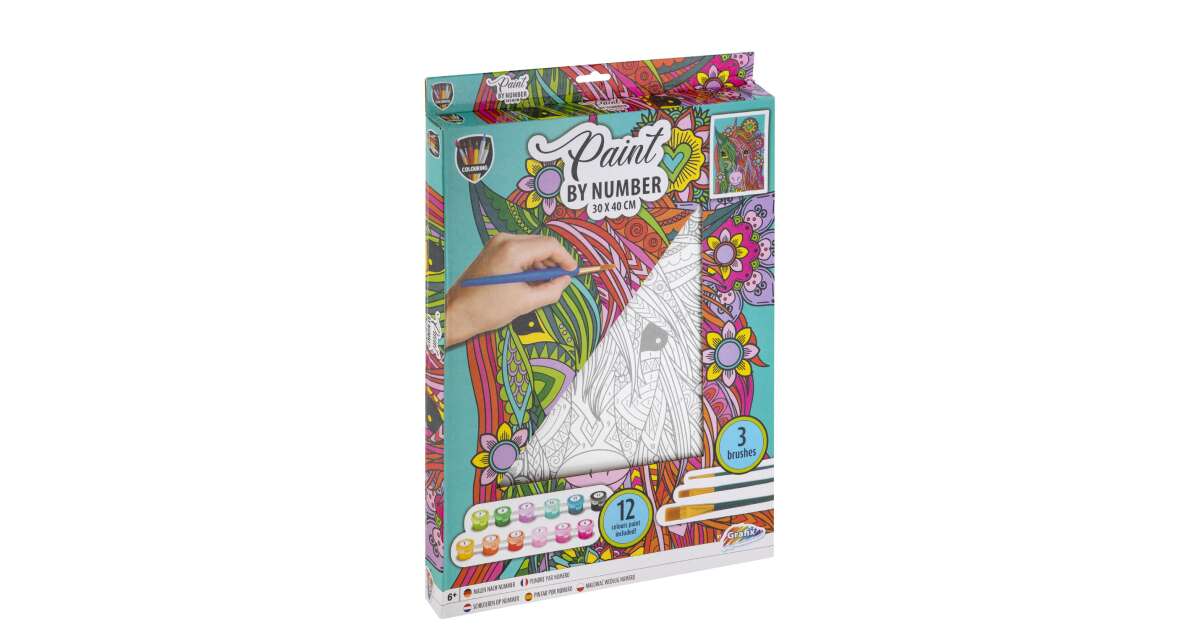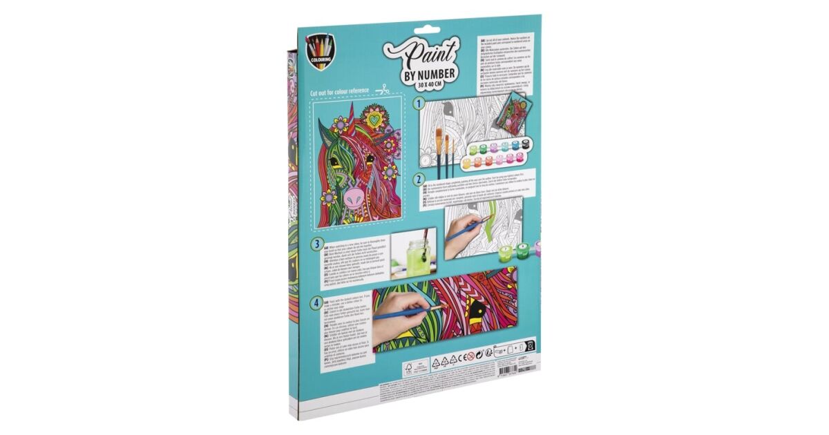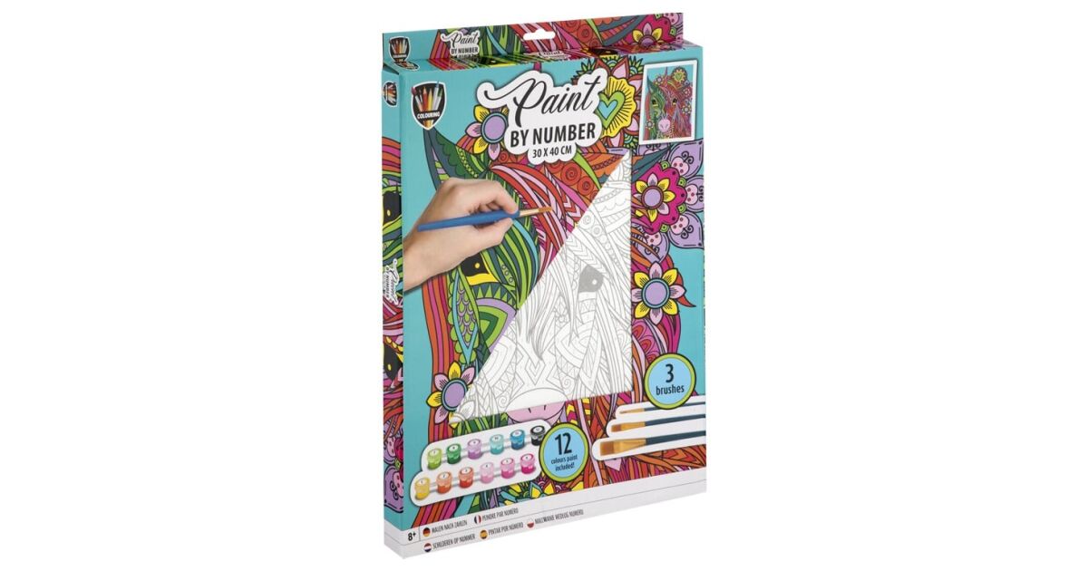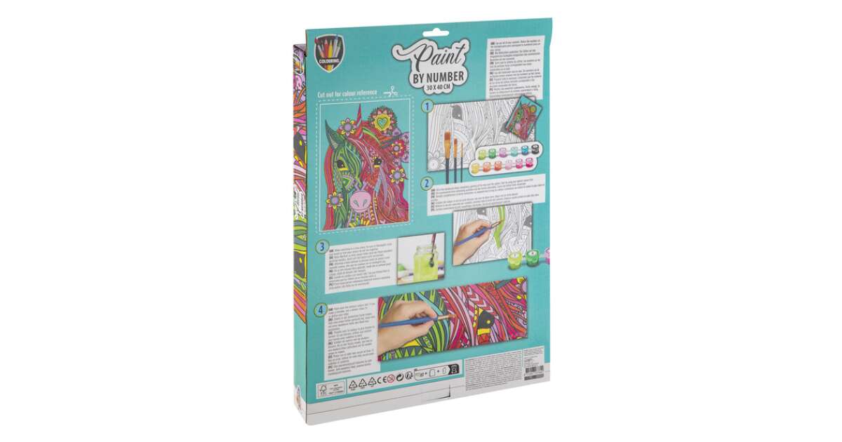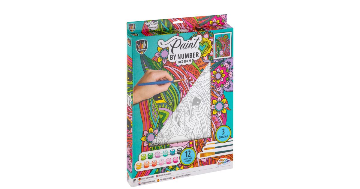 Vytvor si vlastné umelecké dielo s touto zábavnou súpravou na maľovanie podľa čísel! Tento obraz na plátne s rozmermi 30x40 cm zobrazuje krásneho jednorožca, ktorého môžeš vymaľovať 12 žiarivými farbami a 3 štetcami. Perfektný relax pre dospelých a kreatívna zábava pre deti! ✨