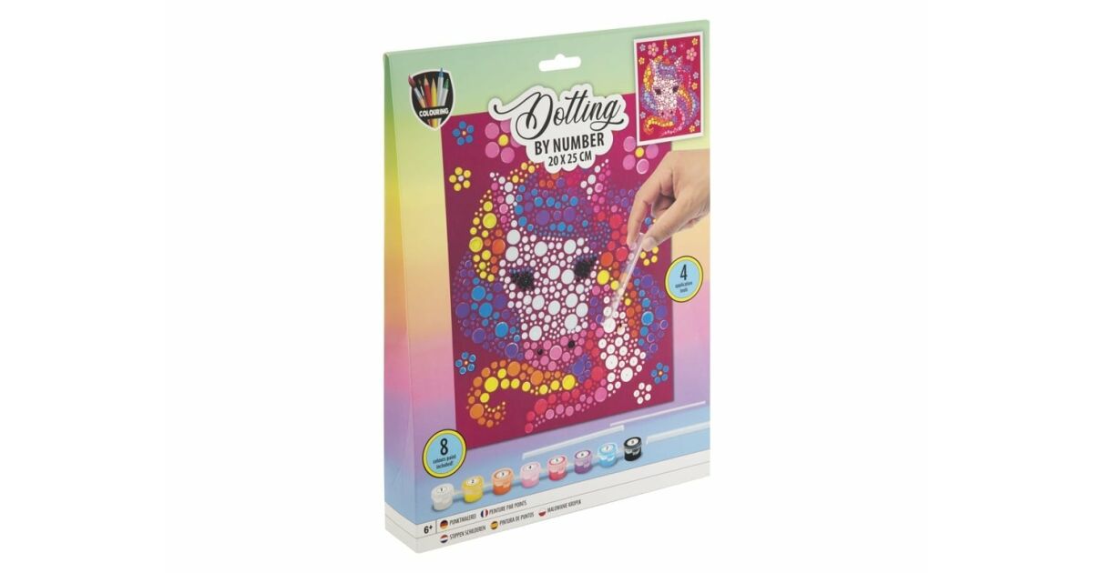 Vytvorte si svoj vlastný krásny obrázok jednorožca s touto kreatívnou sadou na maľovanie bodkovaním! Bodkovanie podľa čísel je jednoduché a zábavné, ideálne na relax pre malých aj veľkých.