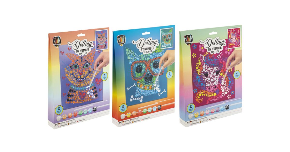 Punto podľa čísel, 20x25 cm, 8 farieb, 4 náradia, 3 typy