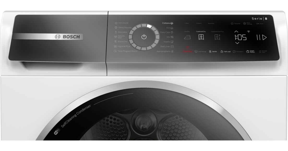 -Bosch Series 8, sušička s tepelným čerpadlom, 9 kg, WQB246CNBY popis