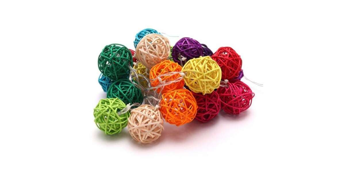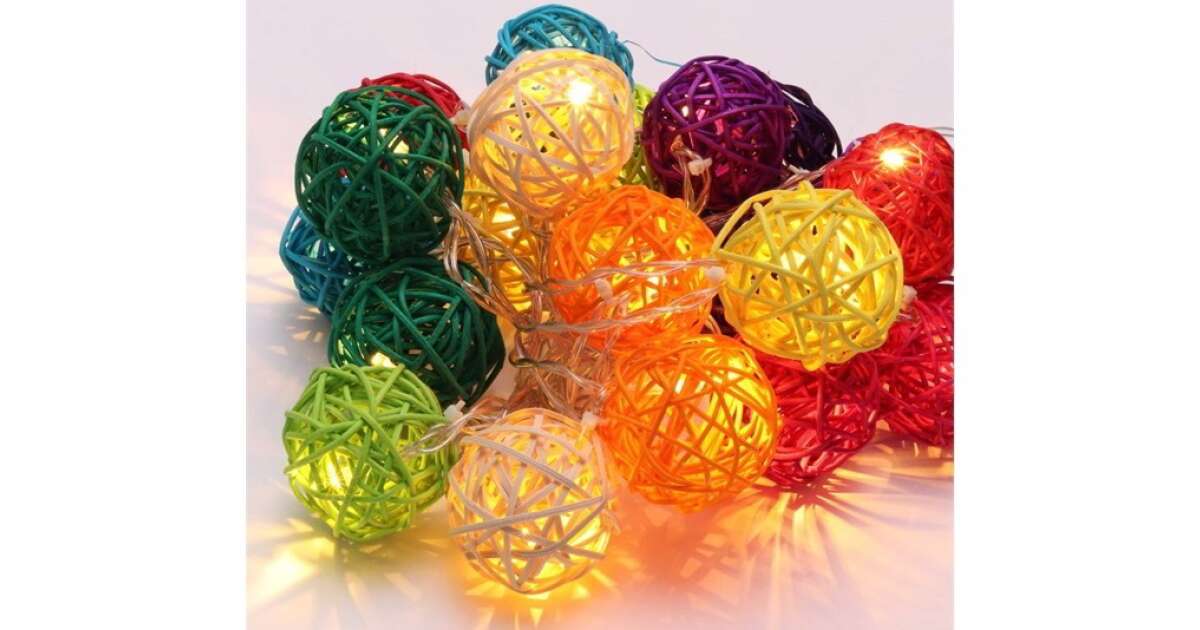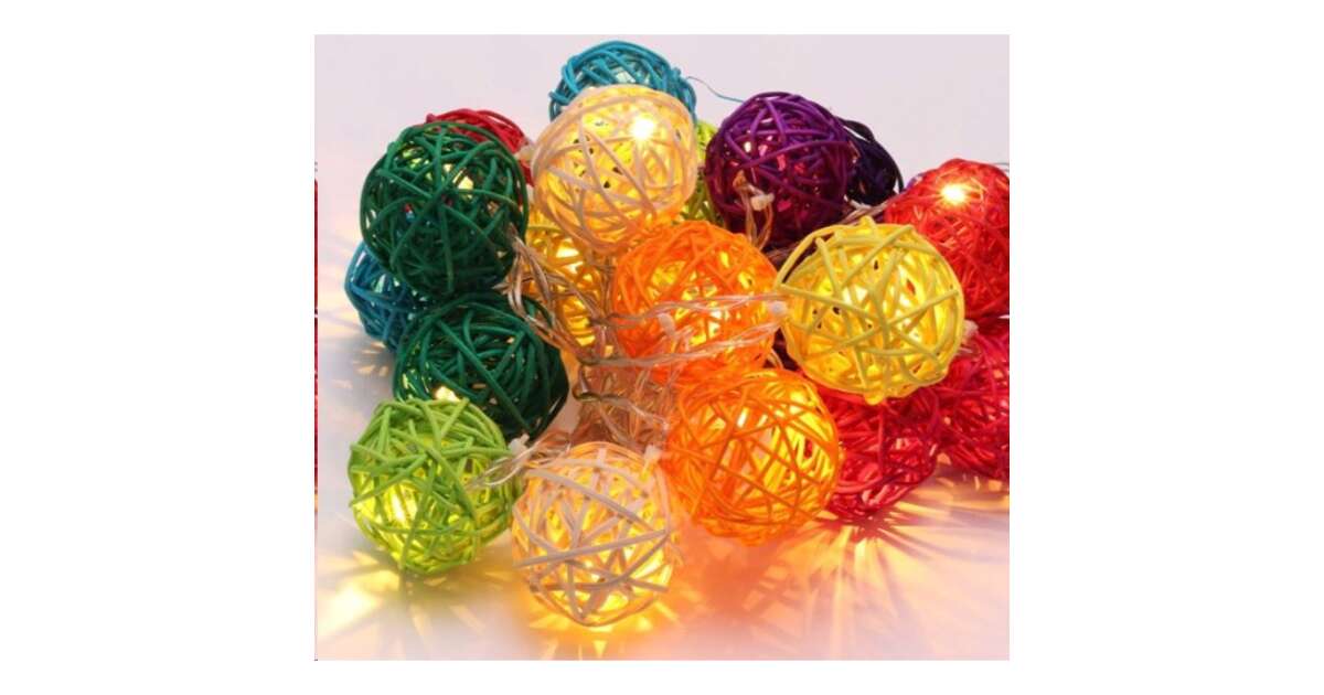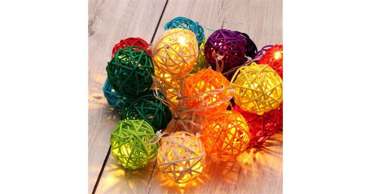 LED svetelná reťaz s ratanovými guľami: 4 metre, 20 LED diód, Viacfarebná dekorácia ✨