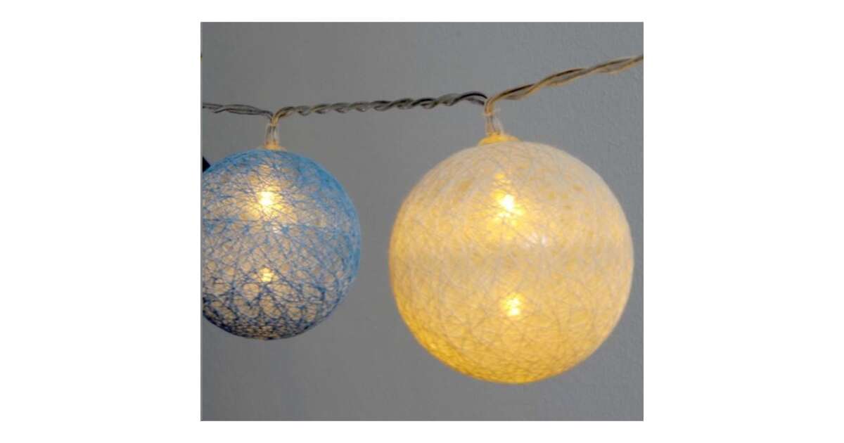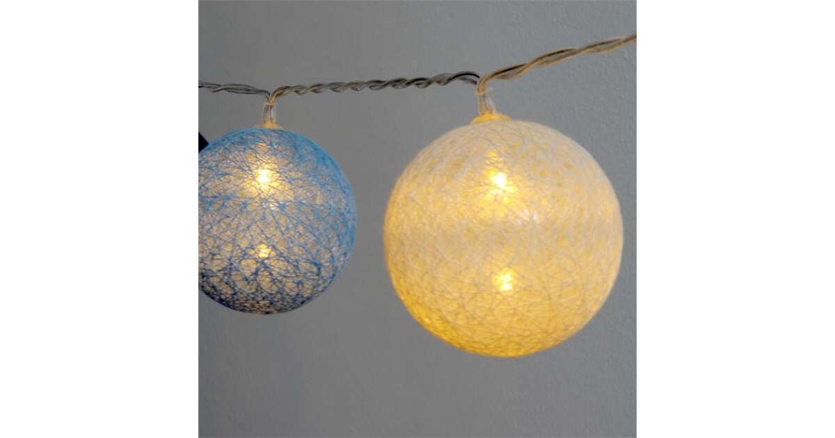 S touto LED svetelnou reťazou, ktorá pozostáva z 30 pletených gúľ s priemerom 6 cm, si jednoducho vyčaruješ útulné svetlo v tvojom domove. Modré, svetlomodré a biele gule krásne harmonizujú a vnesú teplo do každej miestnosti. Vďaka dĺžke 4,5 metra ju môžeš umiestniť rôznymi spôsobmi, či už zavesenú na stene alebo ovinutú okolo nábytku.