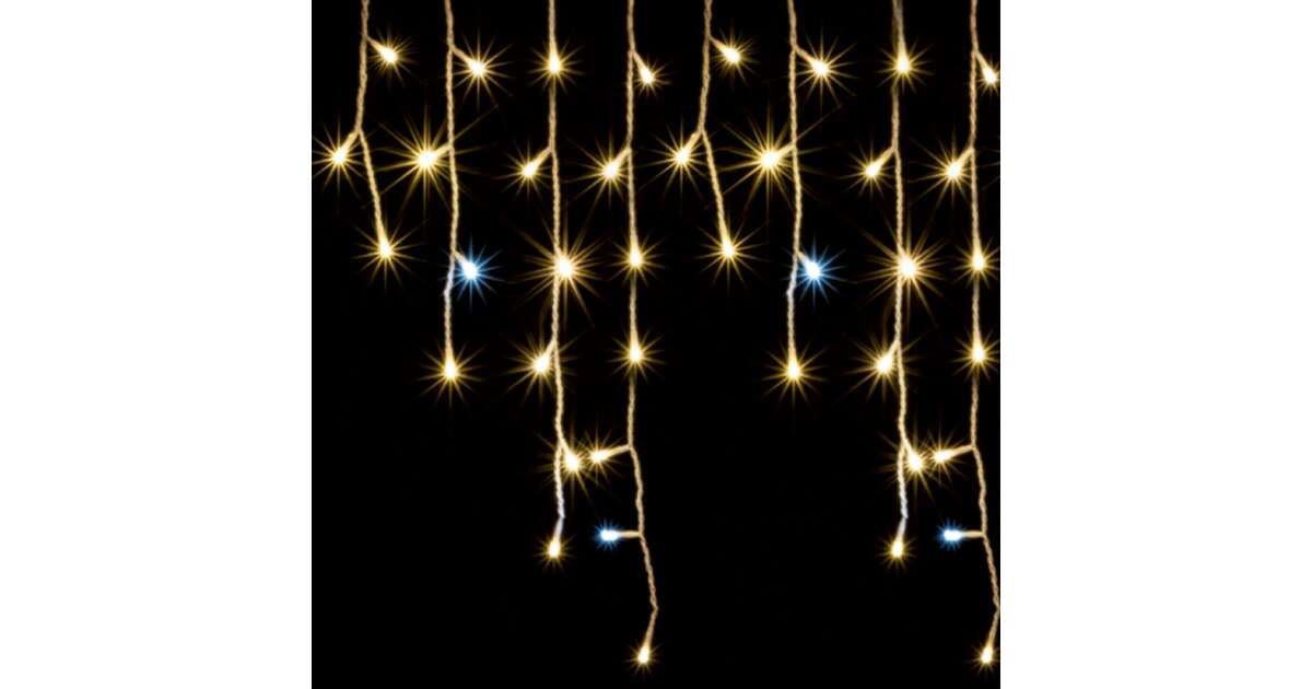 Vyčarujte si útulnú, sviatočnú atmosféru doma alebo na vašej akcii s týmto krásnym LED ľadovým fľaškovým svetleným závesom! 5 metrov dlhý záves je vybavený 300 teplými bielymi LED diódami, ktoré vyžarujú príjemné, teplé svetlo. Na každej druhej girlande sa nachádza aj jedna blikajúca chladno-biela LED dióda, ktorá dodá dekorácii extra lesk.