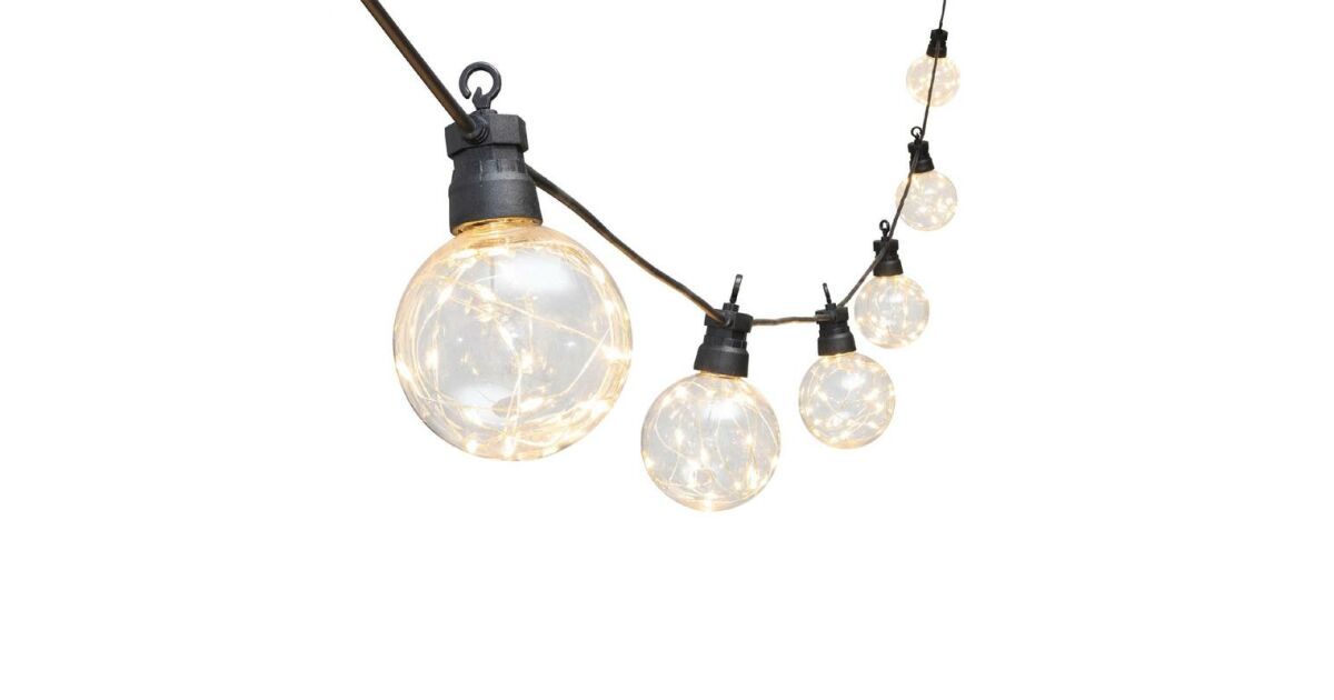 Očarujte svoj domov alebo záhradu týmto štýlovým 5-metrovým LED guľovým svetielkom! V 20 priehľadných guľkách s priemerom 8 cm sa ukrýva 200 teplých bielych mikro LED diód, ktoré vyžarujú príjemné, útulné svetlo. Čierny kábel diskrétne zapadne do akéhokoľvek prostredia.