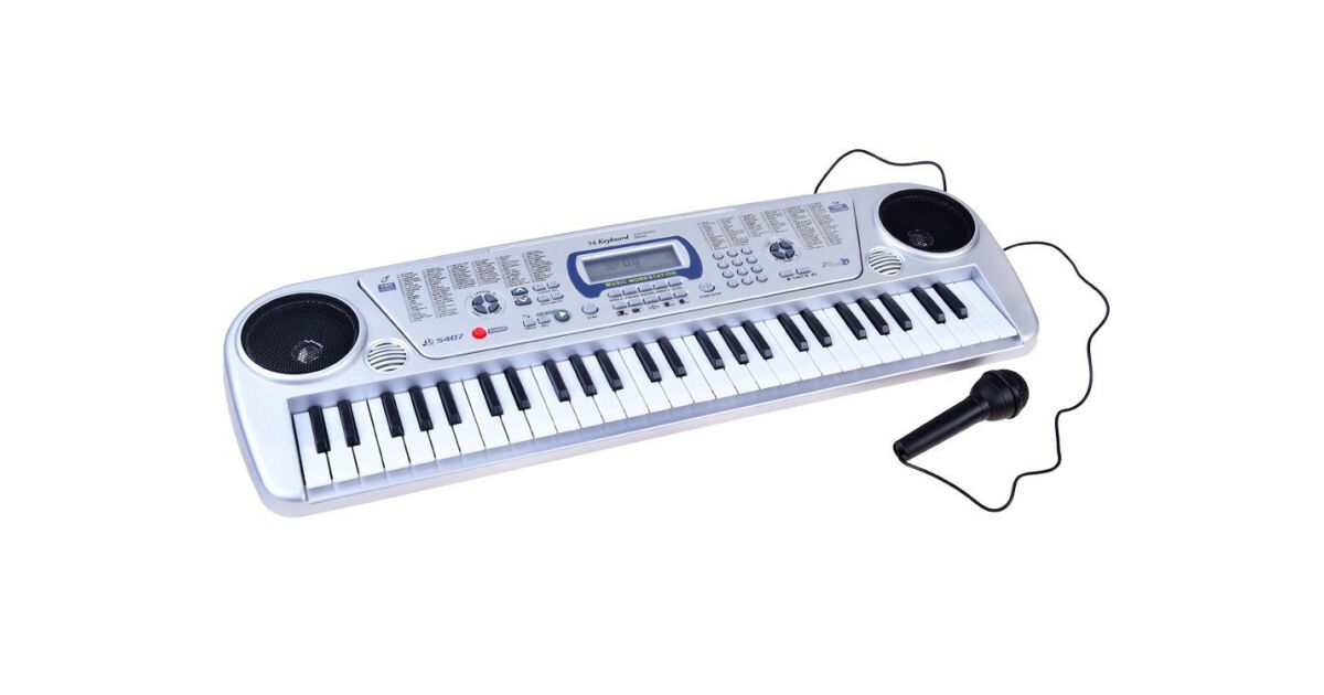 Tento syntetizátor s 54 klávesmi je perfektnou voľbou pre všetkých, ktorí sa chcú ponoriť do sveta hudby. Má moderný dizajn, pekný zelený LCD displej a stereo reproduktory, ktoré poskytujú skvelý priestorový zvuk. Vďaka vstavanému mikrofónu môžeš usporiadať aj vlastné koncerty! 🎉