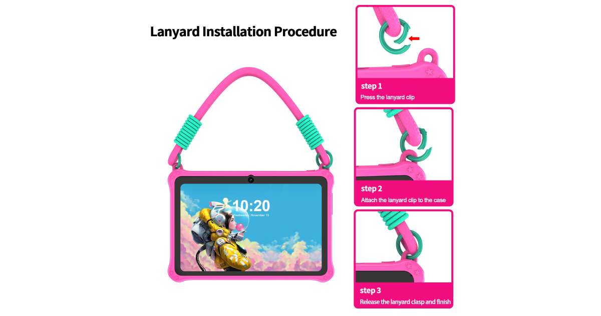 - Ľahko prenosný: Vďaka popruhu je tablet vždy poruke.