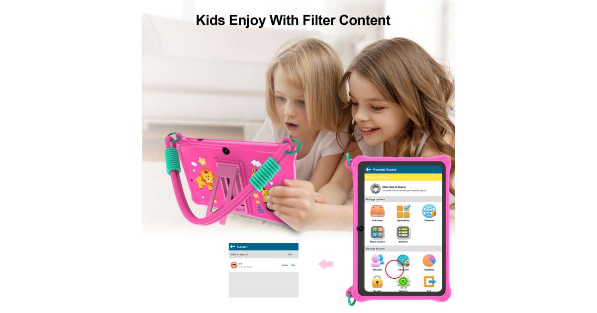Tento ružový detský tablet ILIKE je ideálnou voľbou pre malé deti, ktoré radi hrajú hry, učia sa a zabávajú sa. 7-palcový IPS displej poskytuje živé farby a krištáľovo čistý obraz, zatiaľ čo robustné ochranné puzdro chráni tablet pred menšími nehodami. Vďaka pohodlnému popruhu si deti môžu svoj obľúbený prístroj ľahko vziať so sebou.