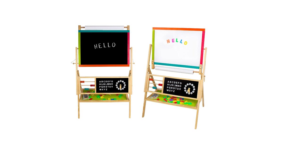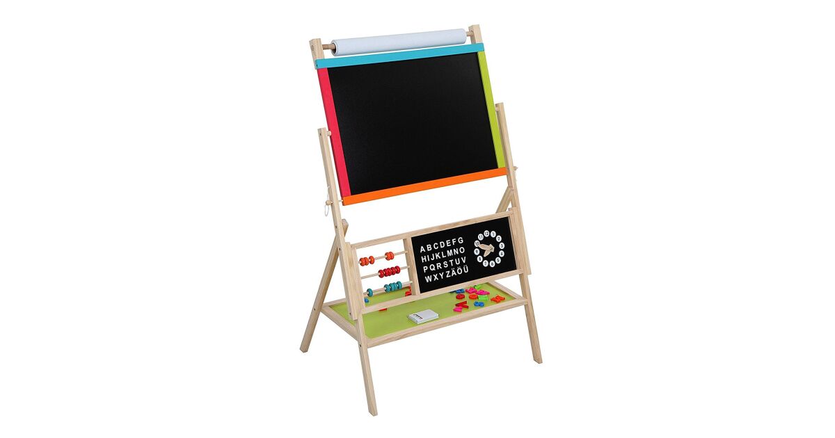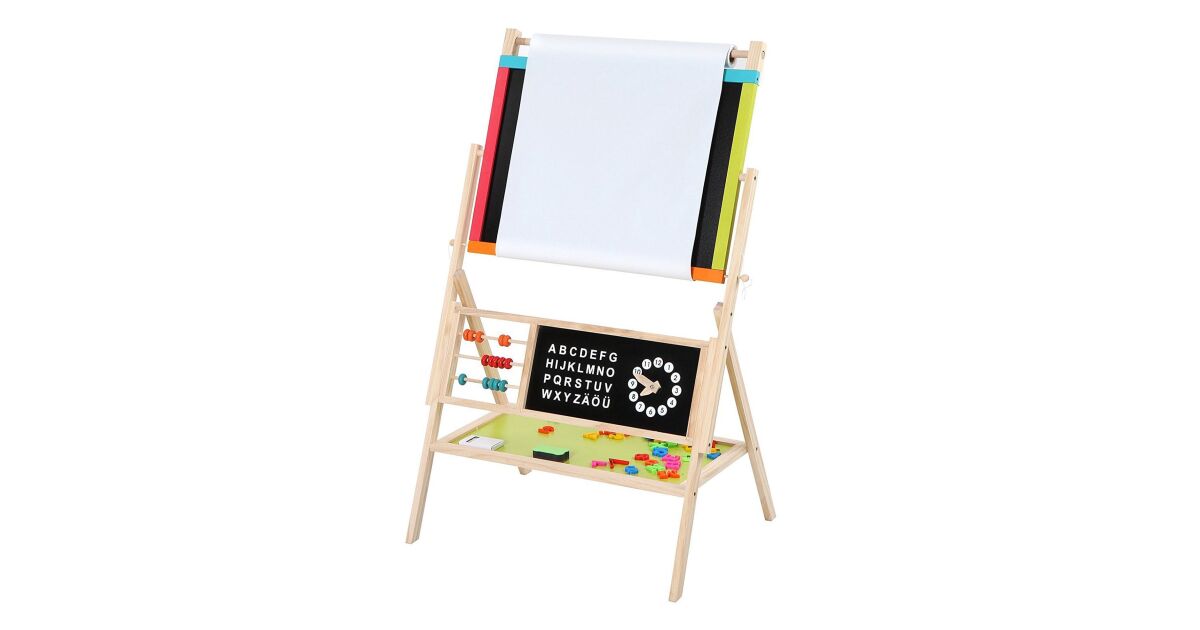 Detská drevená tabuľa, 3 v 1 stojan – čierna tabuľa, magnetická tabuľa, biela tabuľa s doplnkami