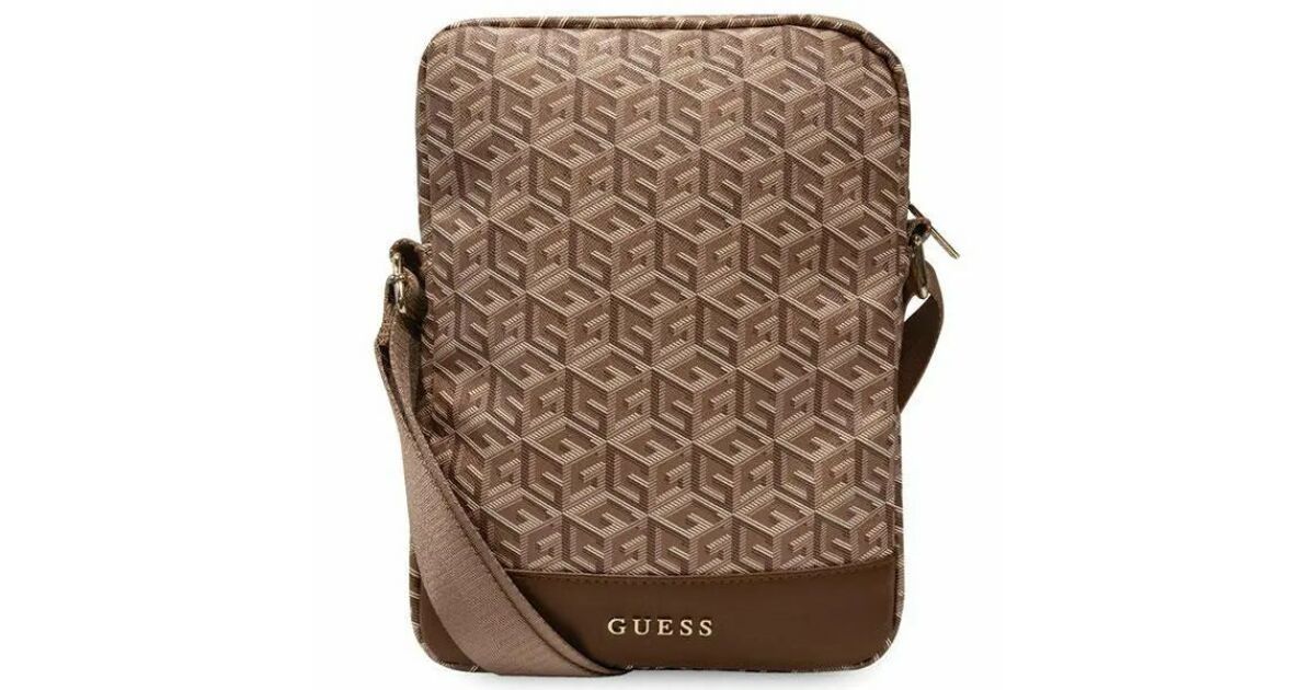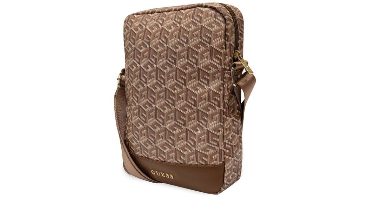 Štýlová a praktická taška od Guess, ktorá dokonale ochráni váš 10-palcový tablet alebo notebook. Elegantná taška s hnedým vzorom G Cube sa hodí ku každému outfitu.