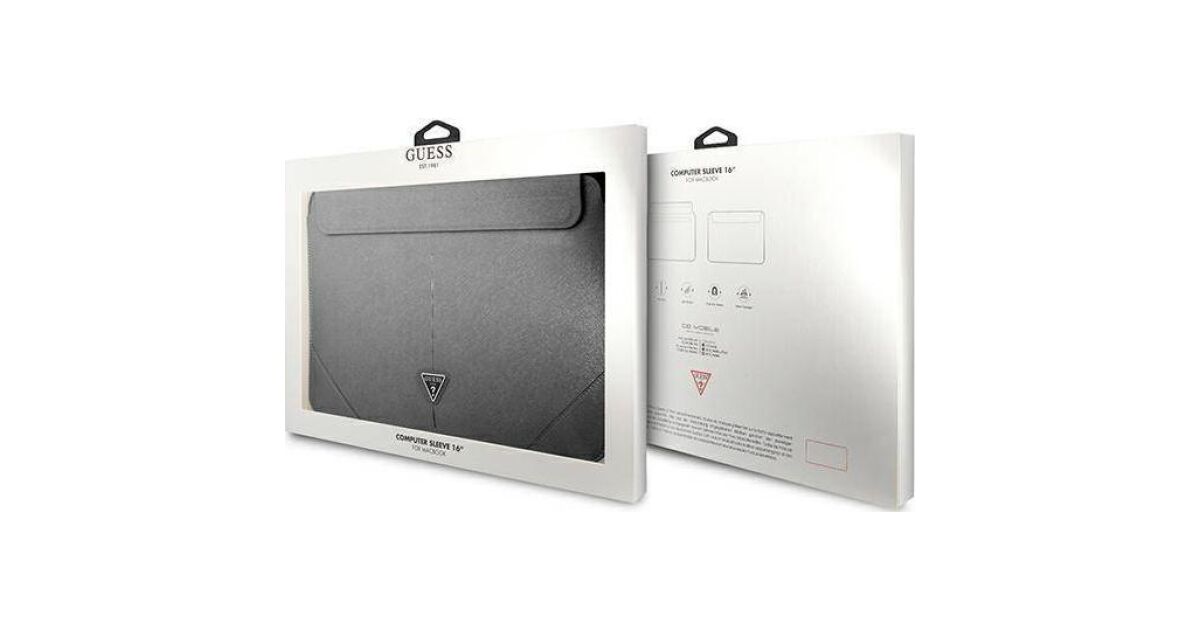 Tento elegantný obal na notebook od značky Guess poskytuje dokonalú ochranu pre tvoj 16" laptop alebo tablet. Kombinácia prémiovej ekologickej kože Saffiano a štýlového loga Guess v tvare trojuholníka zaručuje sofistikovaný vzhľad a bezpečné uloženie. Uzatvára sa magnetickou sponou, takže tvoje cenné zariadenia sú v bezpečí.