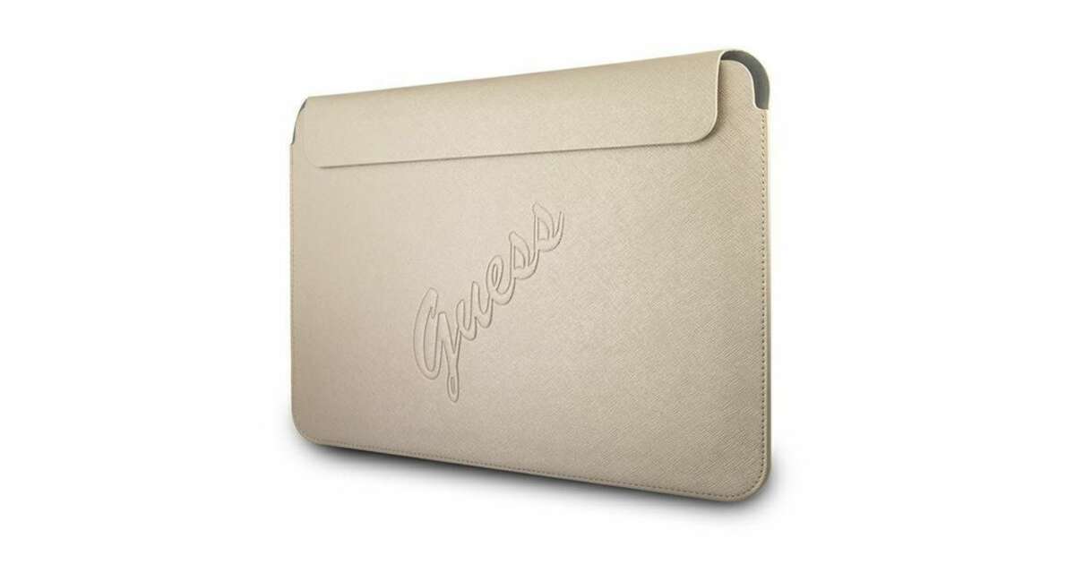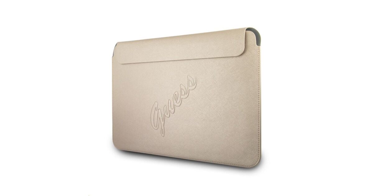 Taška na notebook Guess Sleeve GUCS13PUSASLG Saffiano Script, do 13 palcov, zlatá