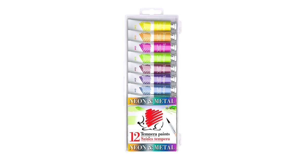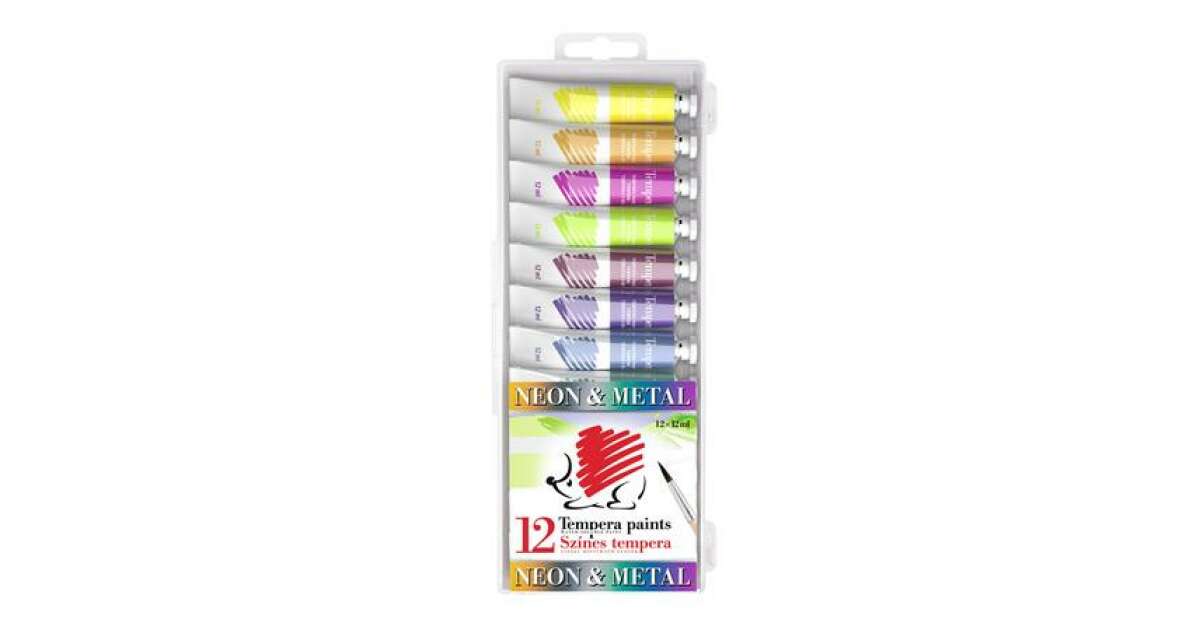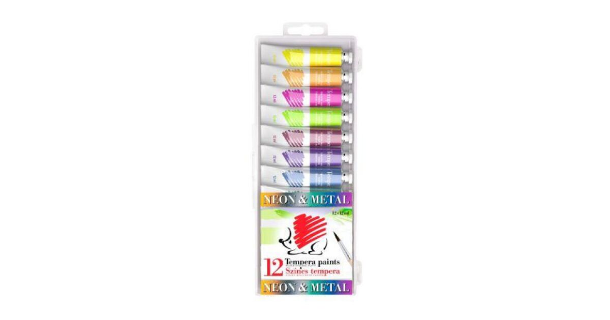 Táto 12-dielna sada temperových farieb ICO Ježko je perfektná pre kreatívne tvorenie, či už do školy alebo domov! S ôsmimi kovovými a štyrmi neón farbami ti zaručene rozžiaria obrázky. ✨