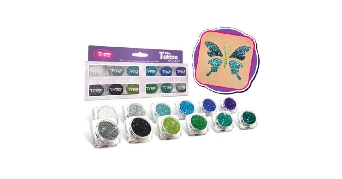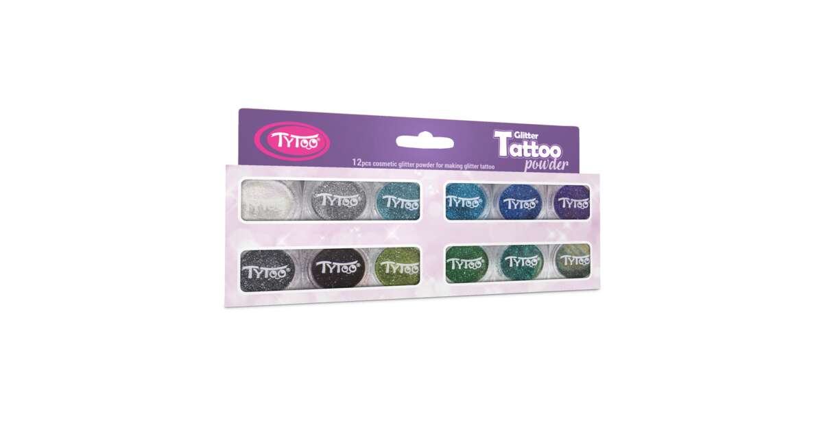 Táto sada 12 trblietavých práškov je perfektná na vytváranie kreatívnych trblietavých tetovaní! Každá 2,5 ml nádobka stačí na 60-80 vzorov. 🎉