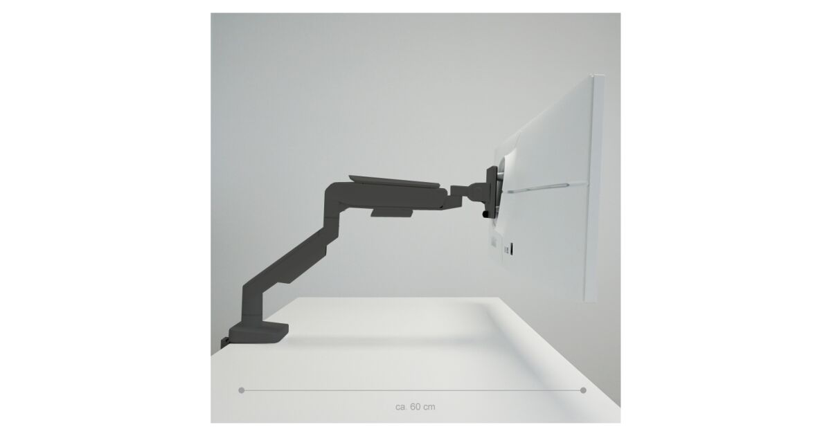 Toto monitorové rameno vám umožní nastaviť obrazovku do perfektnej polohy, maximalizujúc pohodlie a produktivitu. Je nastaviteľné do výšky až 47 cm, takže si ľahko nájdete tú najvhodnejšiu pozíciu pre seba. Vďaka funkciám otáčania a nakláňania vám vždy zaistí optimálny uhol pohľadu.