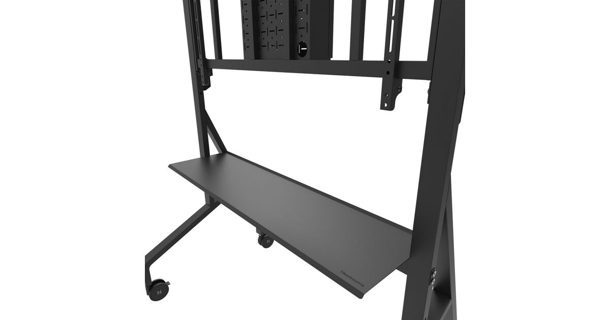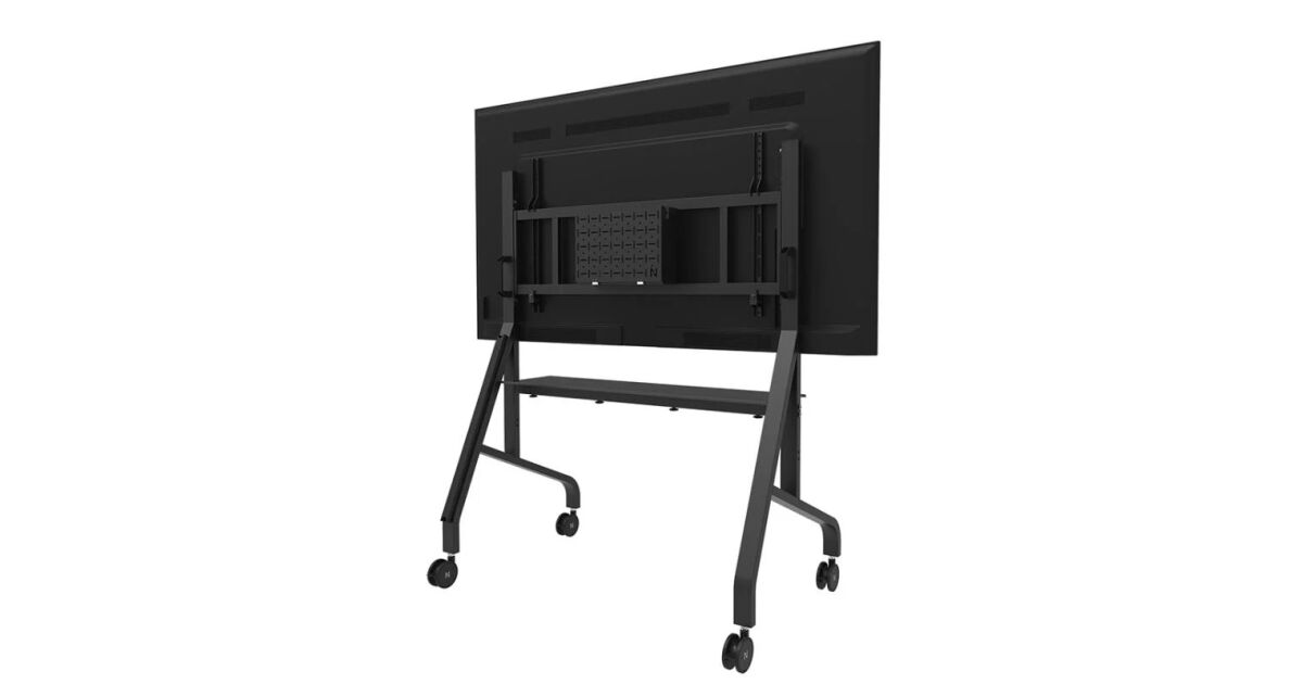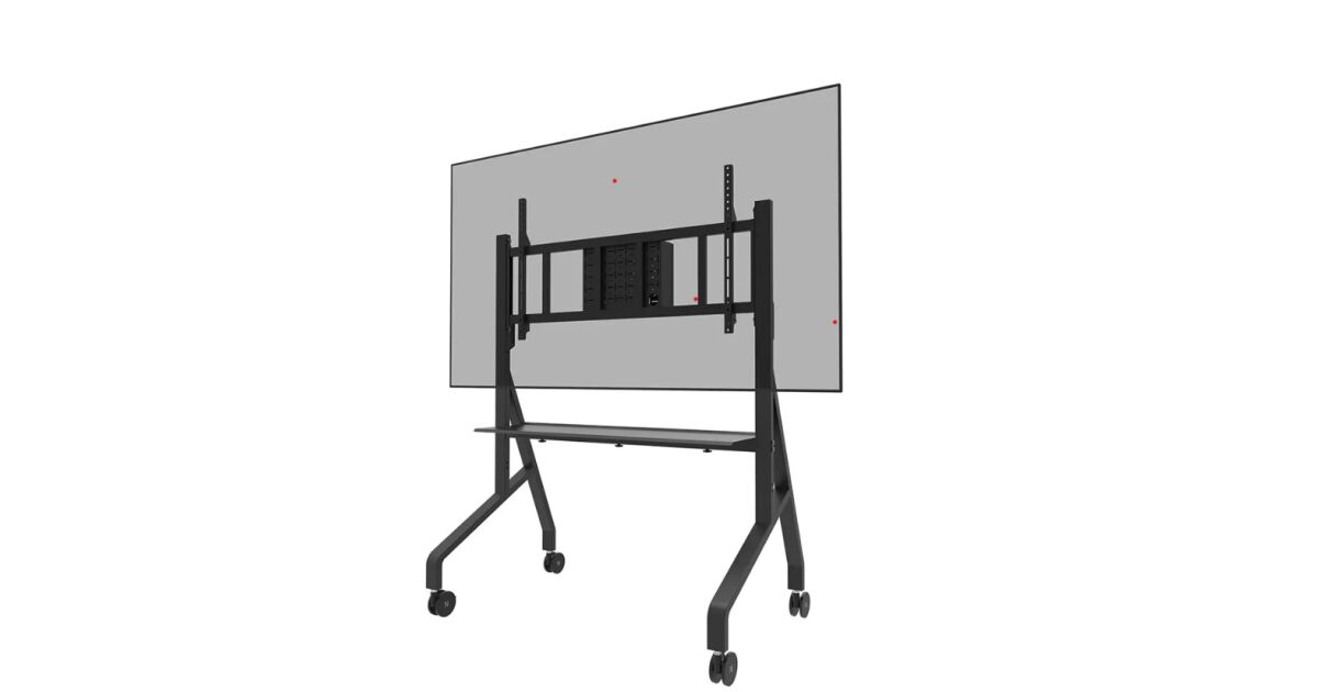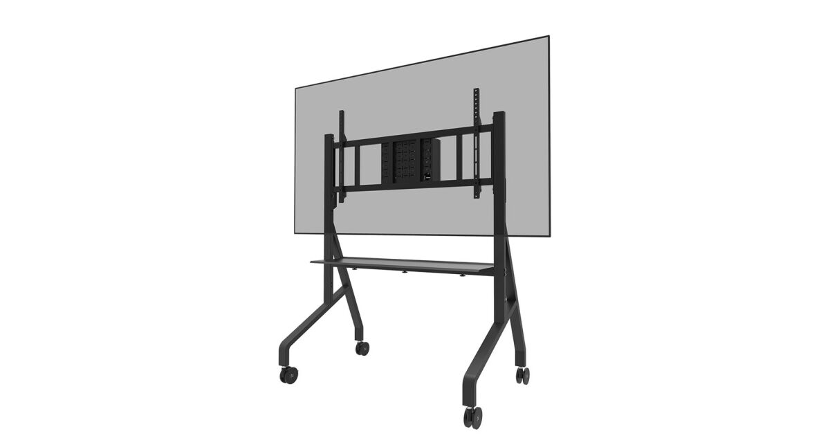 Tento stojan s kolieskami je ideálny na bezpečné a pohodlné umiestnenie veľkých monitorov alebo interaktívnych tabúľ. Ľahko sa presúva, výška je nastaviteľná a má praktickú policu na odkladanie doplnkov.