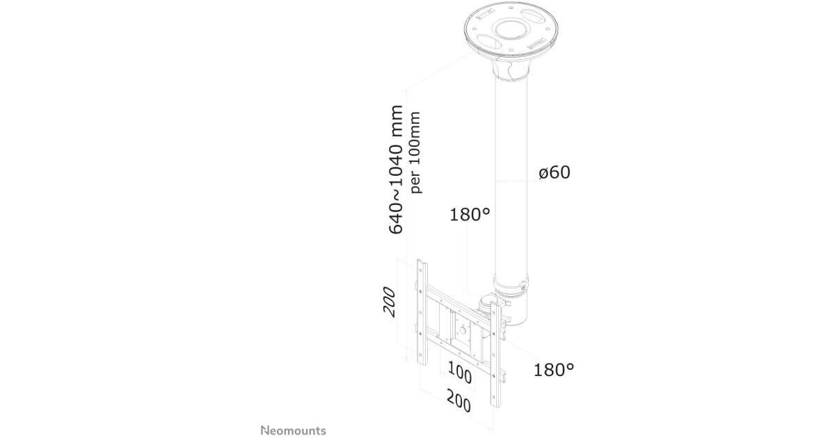 Tento stropný držiak NewStar je ideálnym riešením na montáž LCD TV a monitorov s uhlopriečkou obrazovky od 10 do 40" (25-102 cm). Držiak je možné nakloniť o 180° a otočiť o 360°, čím sa zabezpečí dokonalý pozorovací uhol v každej miestnosti.