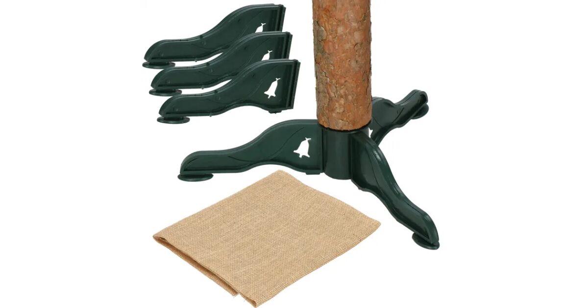 - Stojan: 3-ramenný, tmavozelený plastový stojan, s jutovým vreckom na zakrytie
