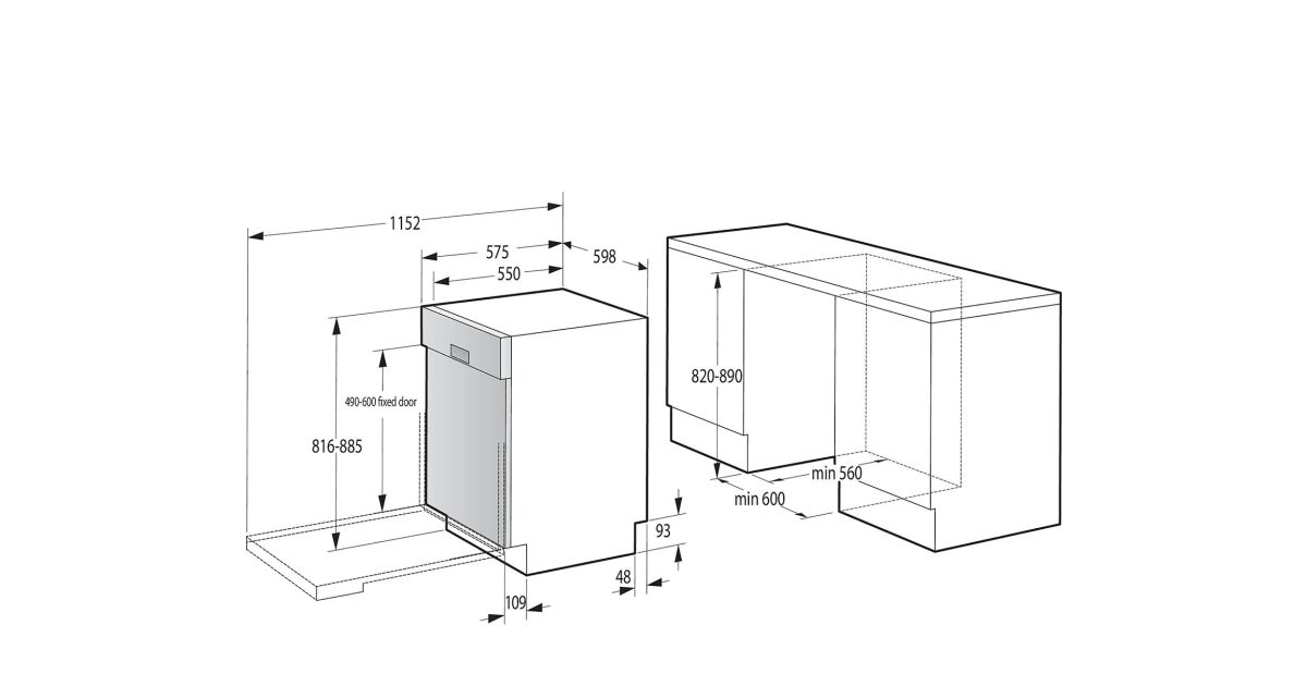 Všeobecné funkcie - Rozmery (Š / H / V): 59,8 cm x 81,5 cm x 57,5 cm - Ďalšie informácie: Vstavané umývačky riadu sa niekedy dodávajú s dekoratívnym predným panelom, ktorý nie je súčasťou výrobku. Viditeľnú farbu výrobku určuje návod na použitie. - Hmotnosť: 32,5 kg - Farba: Inox