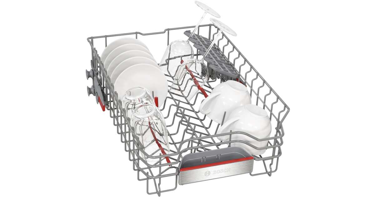 - Koše VarioFlex Pro a zásuvka VarioDrawer Pro: Maximálna flexibilita pri ukladaní riadu. Vďaka flexibilným prvkom a sklopným tŕňom môžete ľahko uložiť všetok riad, dokonca aj ten s najzvláštnejšími tvarmi. V zabudovanej tretej zásuvke je možné pohodlne uložiť aj príbory.