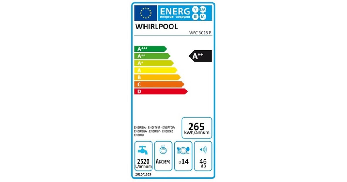 Whirlpool WFC 3C26 P Voľne stojaca umývačka riadu, 14 súprav riadu, 8 programov, PowerClean Pro, energetická trieda E popis