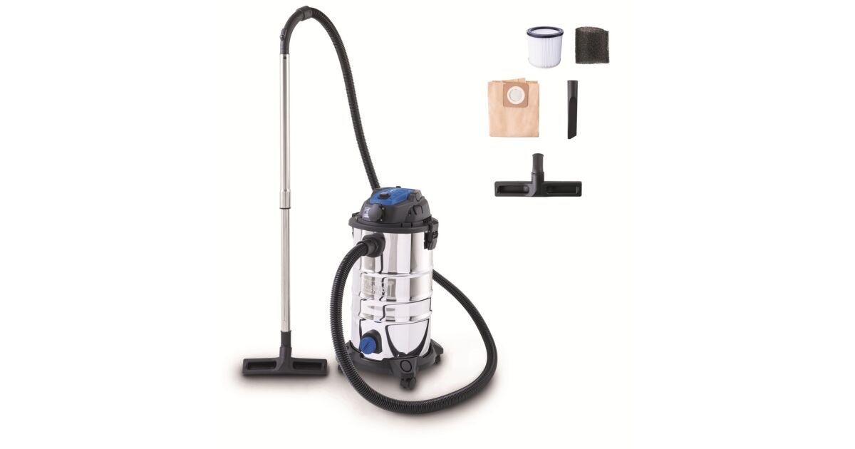 Vysávač na mokré/suché vysávanie Scheppach VC 30P-GL: Výkonné čistenie s funkciou čistenia filtra! 🧽