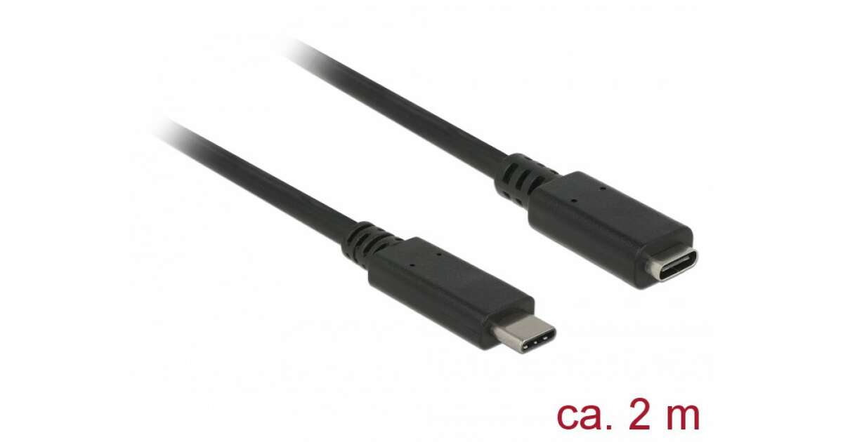 DeLock Predlžovací kábel SuperSpeed USB (USB 3.1 Gen 1) USB Type-C samec > samica 3 A 2 m čierny 85542