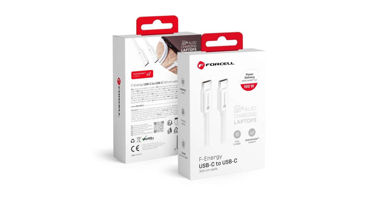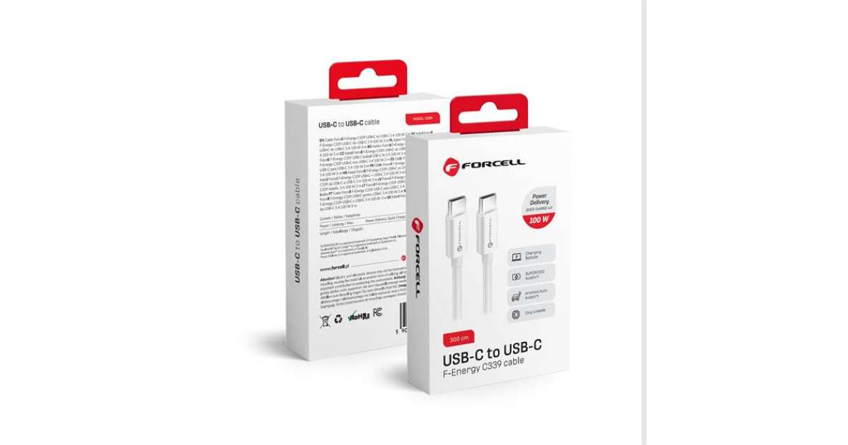 FORCELL kábel typ C do typ C QC4.0 5A/20V PD 100W C339 3m biely popis