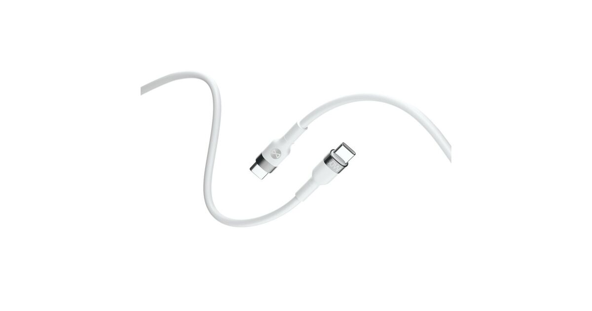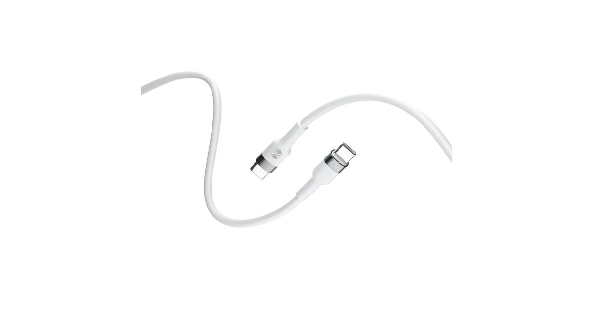 Forever Flexibilný nabíjací a dátový kábel, USB-C na USB-C, 1,0 m, 60 W, 3 A, biely