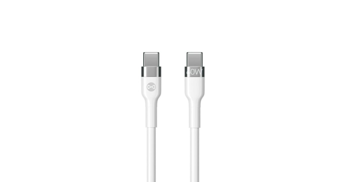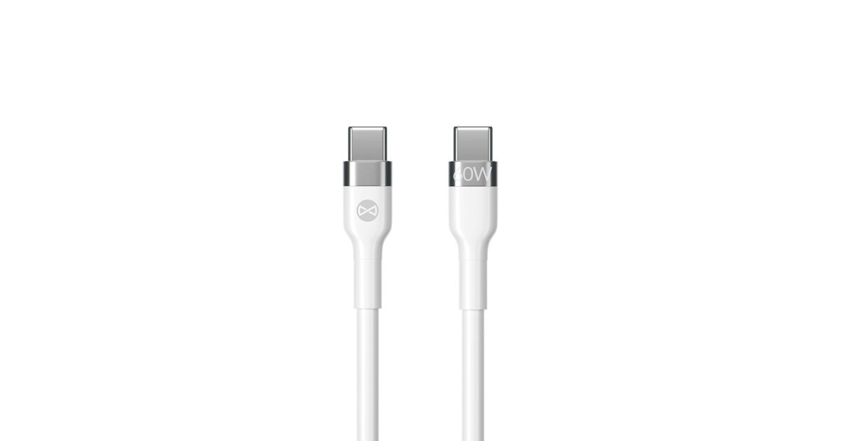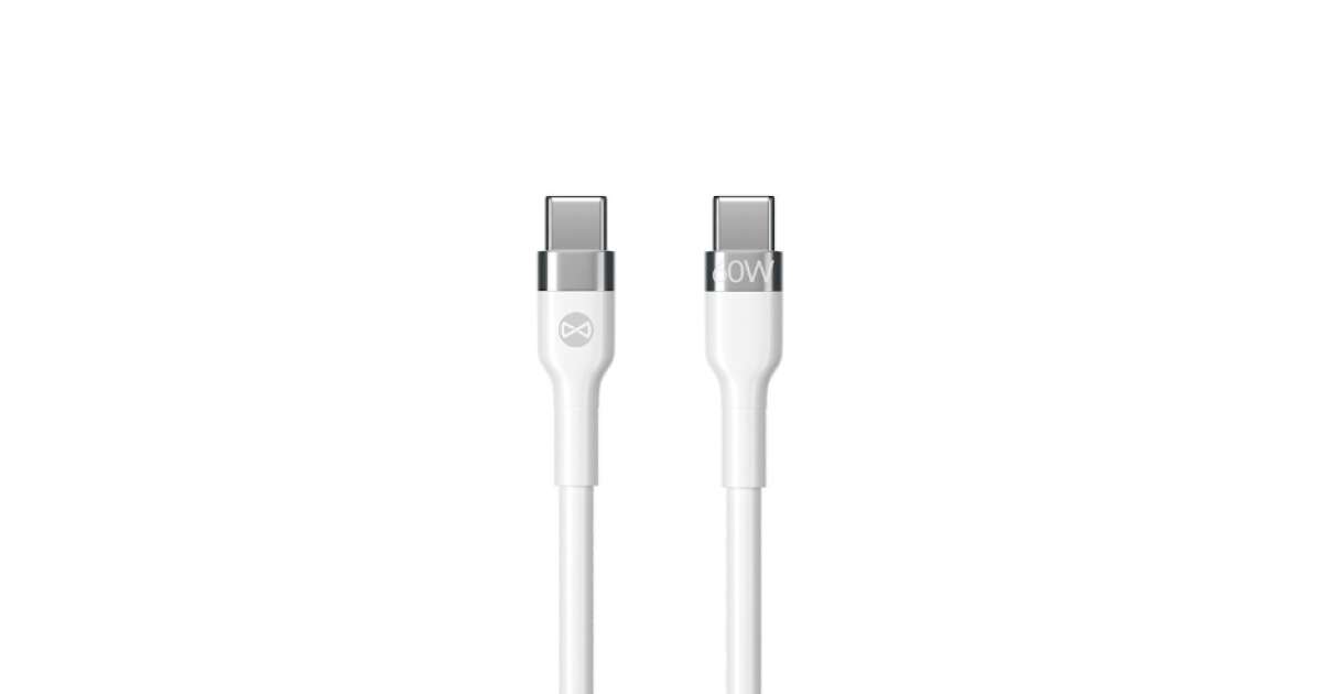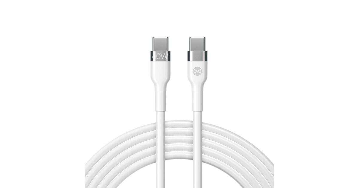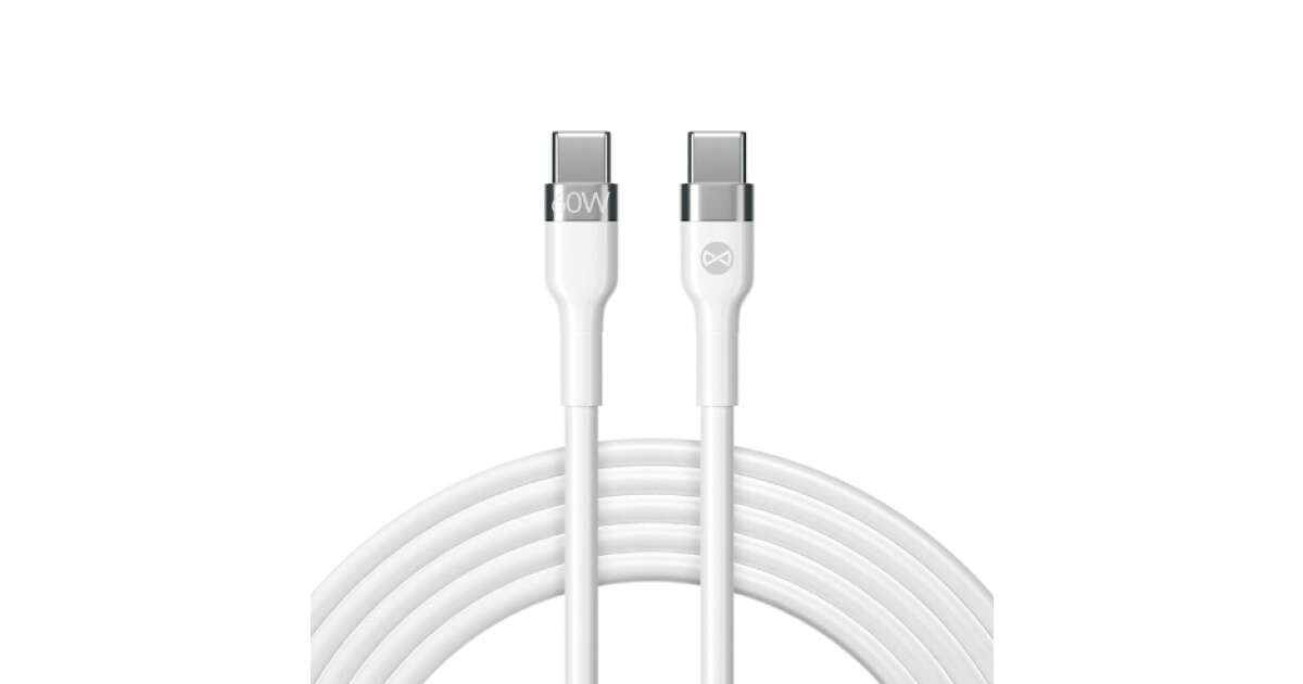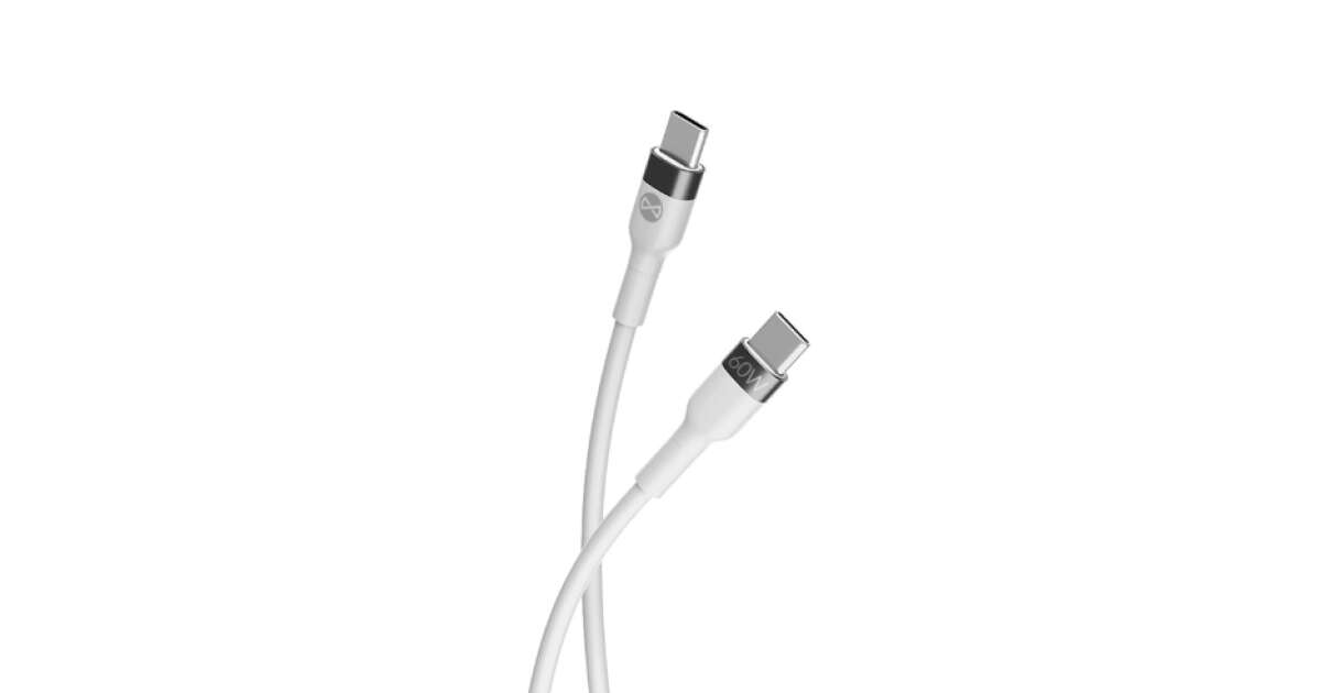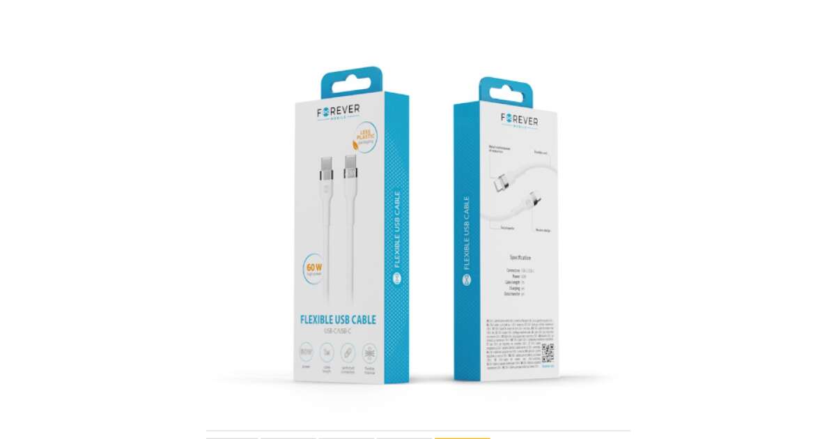 Forever Flexibilný nabíjací a dátový kábel, USB-C na USB-C, 1,0 m, 60 W, 3 A, biely popis