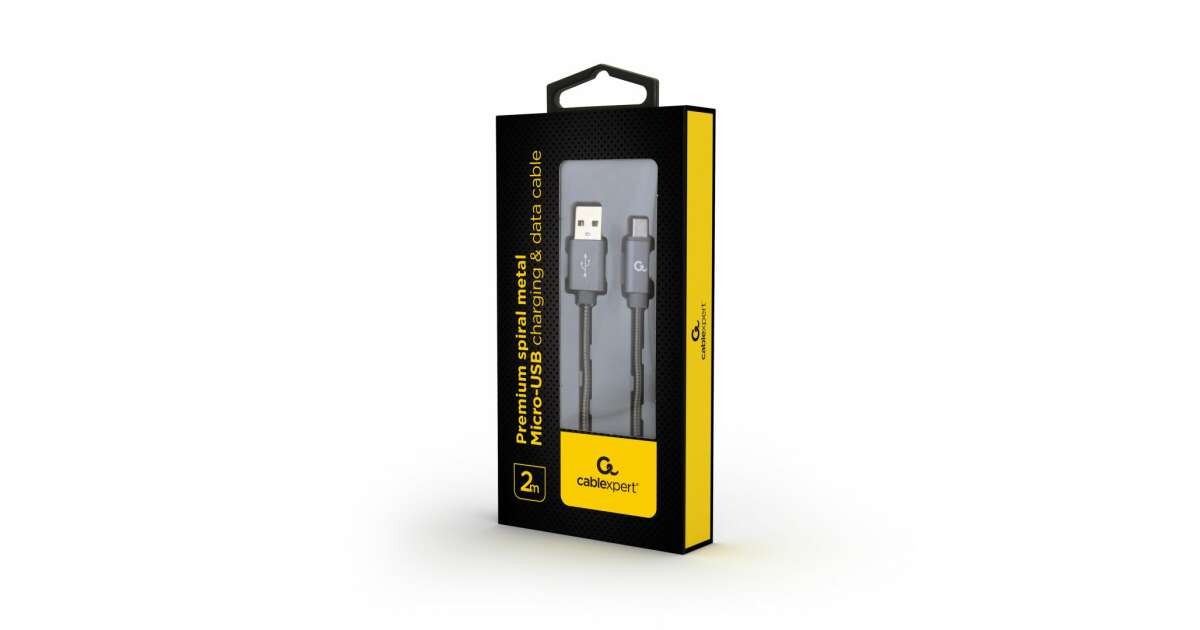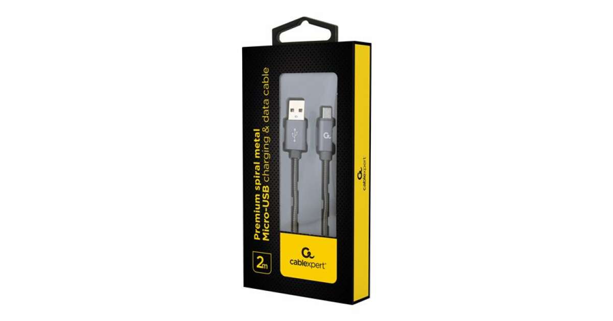 Gembird Premium Kovový Špirálový Micro-USB Nabíjací a Dátový Kábel: Odolný a Štýlový 2m Kábel