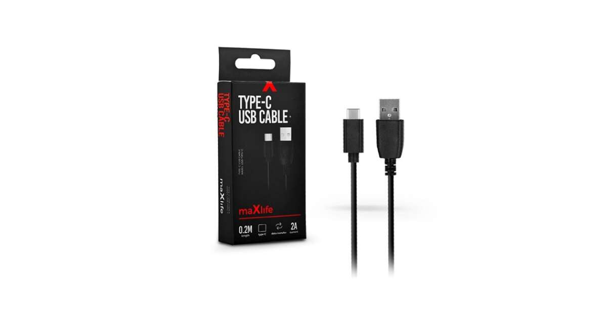 Maxlife Type C Dátový a nabíjací kábel kompatibilný s rýchlym nabíjaním 2A 20cm čierny popis