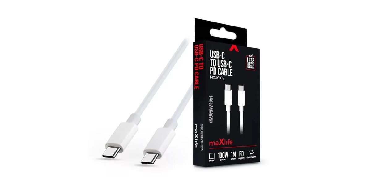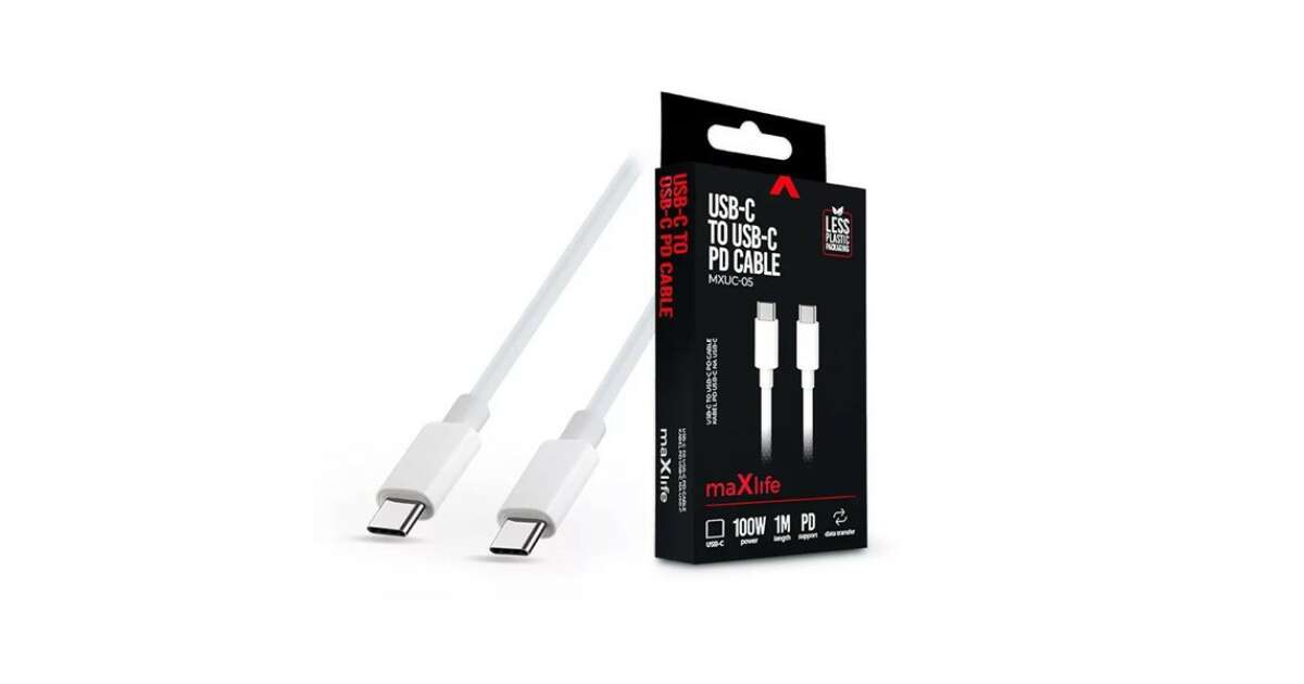 Maxlife Type-C – Dátový a nabíjací kábel Type-C s 1 m káblom – Maxlife MXUC-05 Kábel USB-C na USB-C PD – 100W – biely názory