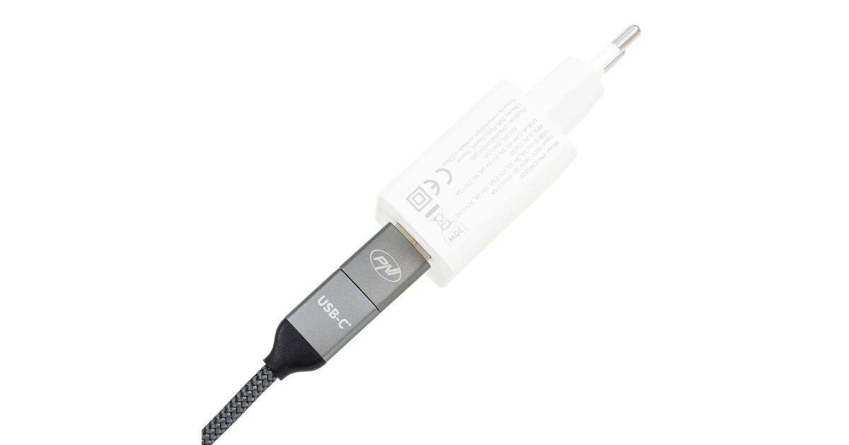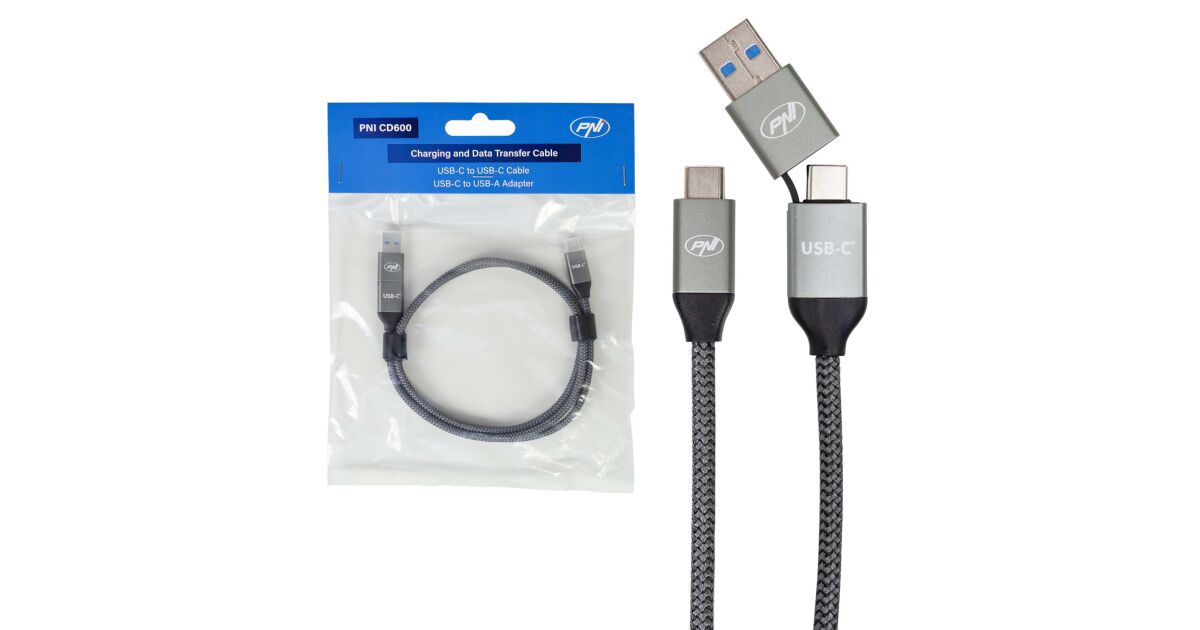 Dátový a nabíjací kábel PNI CD600 USB Type-C - Type-C 60W + adaptér USB Type-C - USB-A, dĺžka 1 m ⚡️
