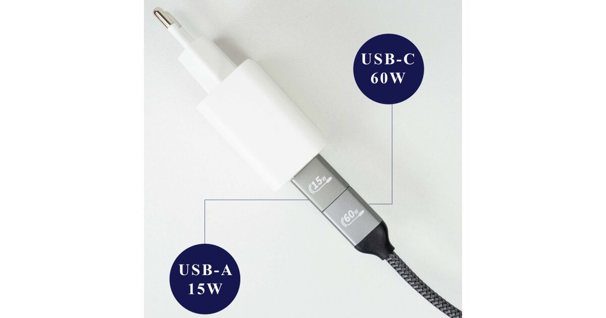 - 🚀 Ultrarýchle nabíjanie: Z USB-C na USB-C až 60W, z USB-C na USB-A (s adaptérom) 15W.